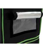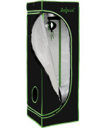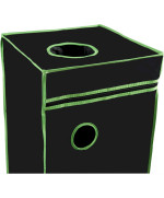 Der schwarze Stoffbezug ist aus einem stabilen hochwertigen Material hergestellt und 99,9 % lichtundurchlässig. Die hochreflektierende Beschichtung an der Innenseite sorgt für eine Lichtreflektion von 95% und fördert effektives Wachstum der Pflanzen. Ein 8 cm sowie drei 20 cm große Zugänge mit Doppel-Zugbänder ermöglichen die Installation von Belüftungssytemen, Kabeln und Zubehör. Das Innenraumklima kann ebenfalls über die Klett-Zuluftklappe geregelt werden und dank des Netzeinsatzes bleiben unerwünschte Schädlinge draußen.