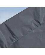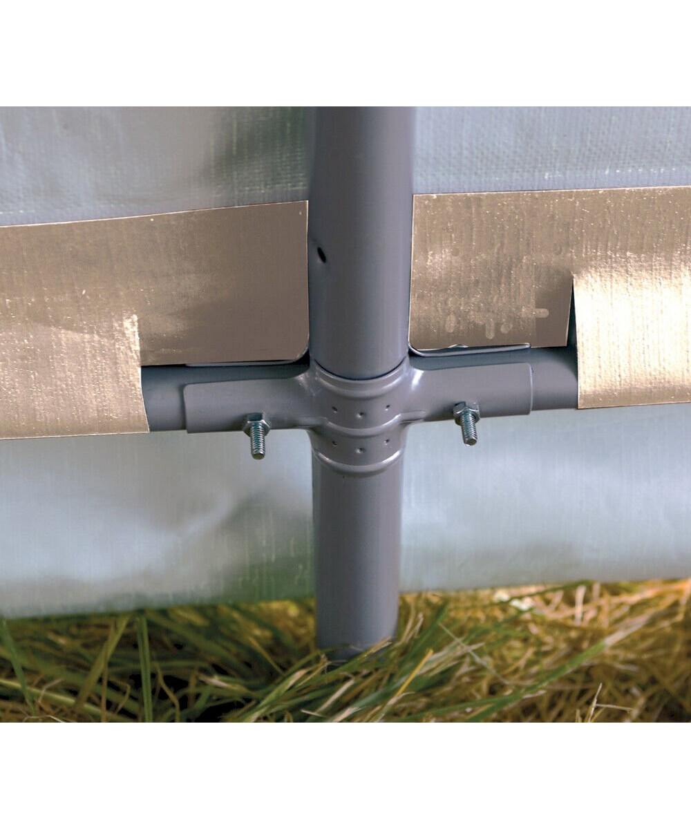 Die hochwertige Polyethylene-Plane (210g/m²) ist UV-beständig und durch eine spezielle Versiegelung (keine Nähte) absolut wasserdicht. Ein 3,5cm massives und Premium beschichtetes Stahlgestell verhindert Rostbildung und garantiert eine hohe Lebensdauer. Im Eingangsbereich ist eine Tür (BxH 150x130cm) mit 2 Reißverschlüssen und Befestigungs-Gummis eingearbeitet. Verstärkte Rückwand für zusätzliche Stabilität.