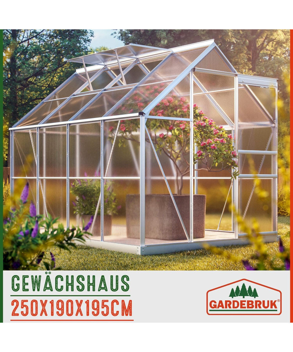 Alu Gewächshaus 250x190x195cm mit Fundament