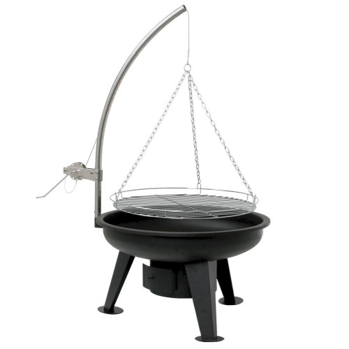 Der Grill ist ausgestattet mit einer Ø 54 cm großen Grillfläche und einer Ø 64 cm großen Feuerschale. Der massive Schwenkgrill wiegt etwas mehr als 9 kg und ist dennoch leicht zu verstauen.