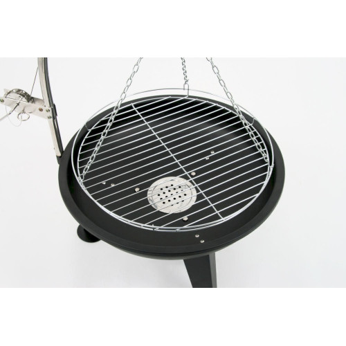 Das Grillrost hängt an drei Ketten und ermöglicht somit ein gleichmäßiges Schwenken des Grillguts.