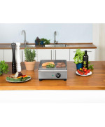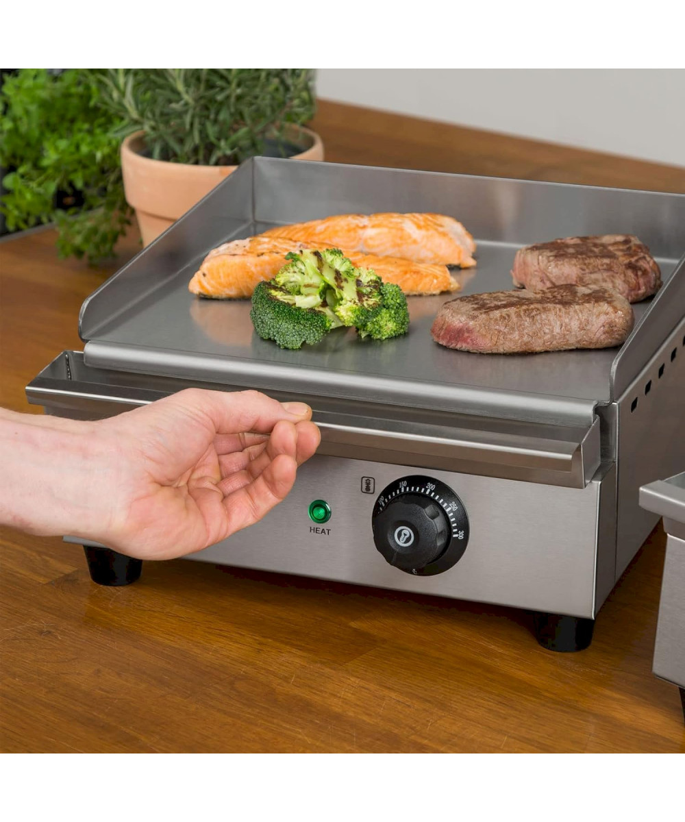 Wer professionell mediterran Braten möchte und Wert auf eine einfache Handhabung legt, kommt bei dieser 1400 Watt Plancha Platte auf seine Kosten.
