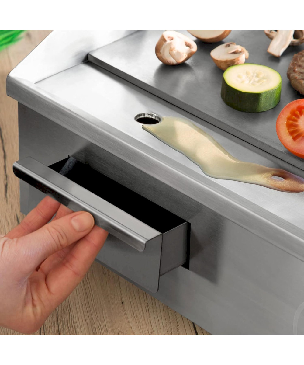 Die vertes Grillplatte mit 3000 Watt Leistung und Edelstahl Gehäuse ist ein echter Hingucker und wird vornehmlich in der Gastro und im Catering eingesetzt. Dank der Grillfläche aus legiertem Hochleistungsstahl gelingen beste Grill-Ergebnisse.