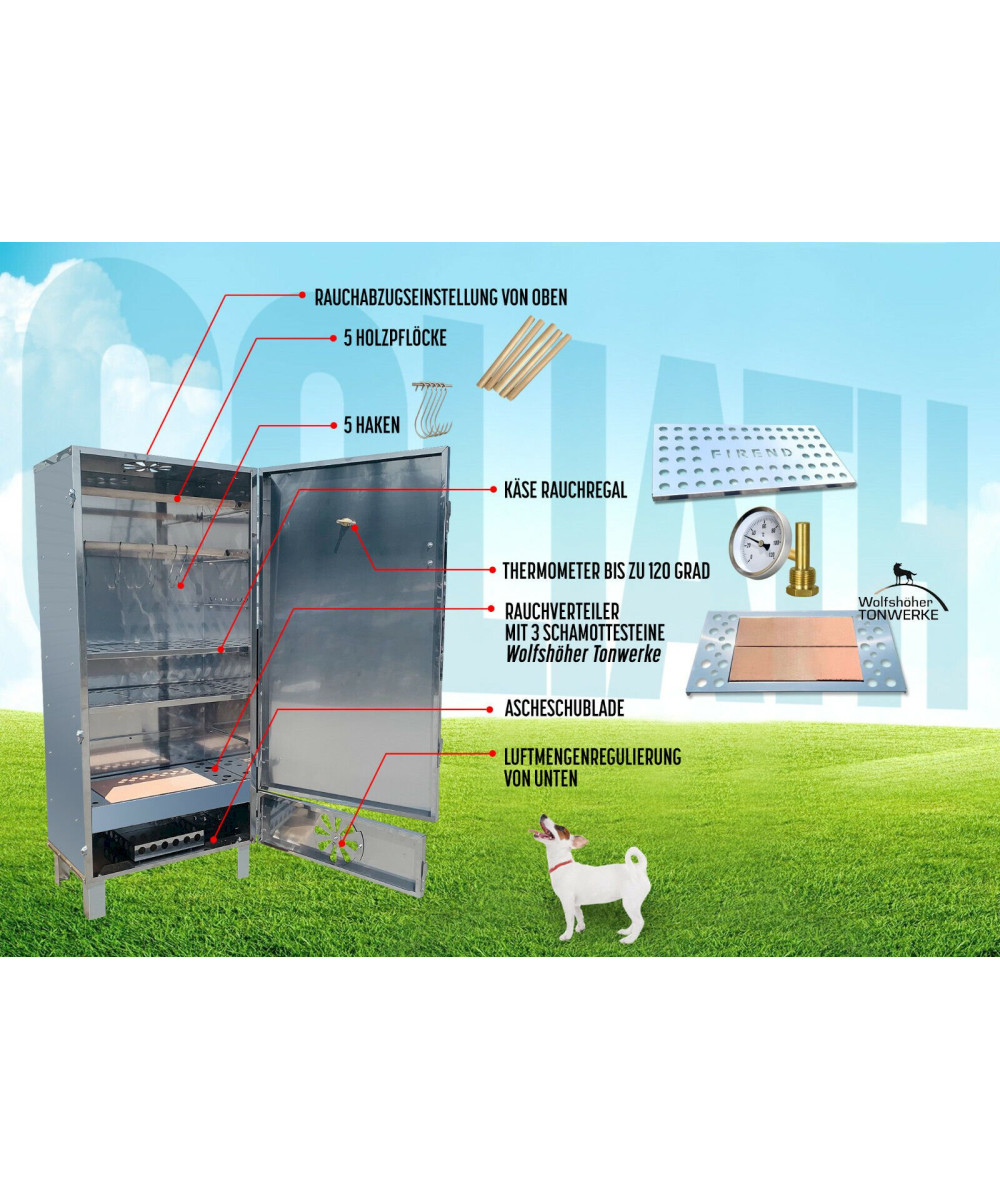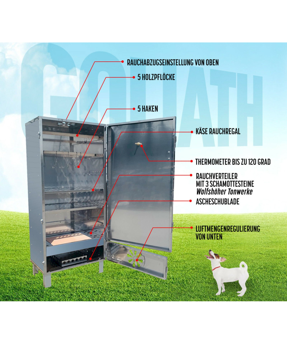 GOLIATH Räucherofen Premium + Zubehor Räucherei Räucherschrank aus Edelstahl