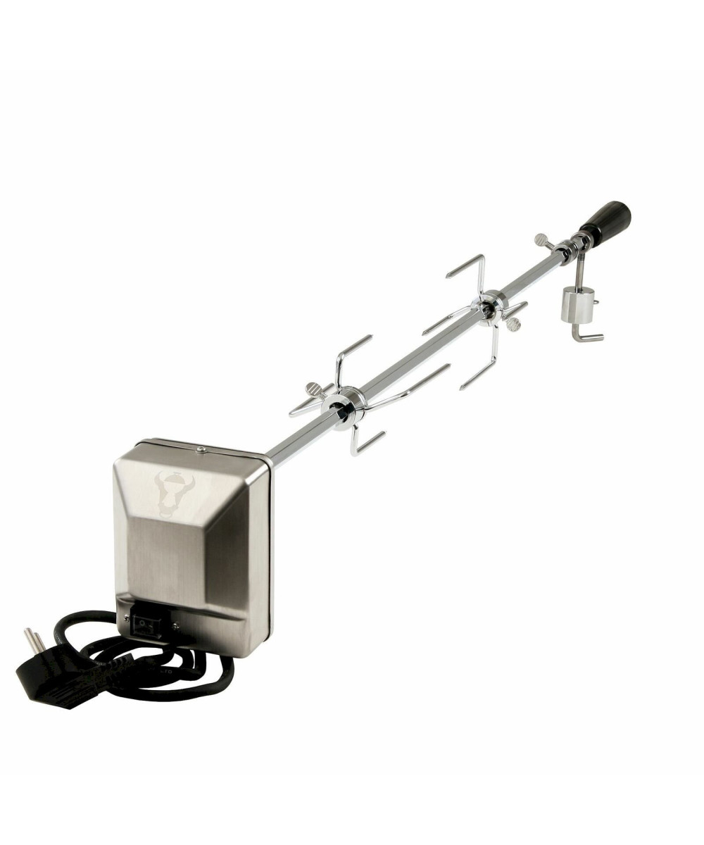 - Lieferumfang: 1x Spieß, 1x Motor, 1x (Universal-) Halter, 2x Fleischnadeln, 1x Lager und 1x Ausgleichgewicht