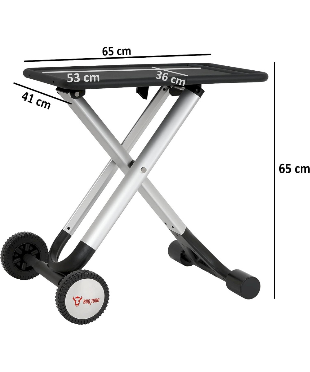 Der Grillwagen von BBQ-Toro ist vielseitig einsetzbar und auch als Beistelltisch geeignet. Stellen Sie Ihren Tischgrill auf die Ablage oder bereiten Sie Ihre Speisen direkt am Grill zu. Der Beistellwagen lässt sich leicht und platzsparend zusammenlegen. Mit dem zusammengeklappten Maß von (L) 97 x (T) 51 x (H) 15 cm passt der Tisch ideal in einen schmalen Stauraum oder eine Nische.