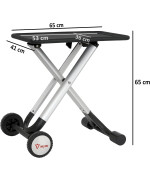 Der Grillwagen dient nicht nur als Ablage Ihrer Grillutensilien, sondern dank seiner perfekten Größe ist er auch als Zubereitungstisch für Ihr Grillgut ideal geeignet. Der Grilltisch hat eine Arbeitsfläche (53 x 36 cm) aus pulverbeschichtetem Metall. Das Untergestell ist aus Aluminium und Kunststoff gefertigt. Die Aufstellgröße des Beistelltischs beträgt (B) 65 x (T) 41 x (H) 65 cm. Die Arbeitsfläche hat die Maße (B) 53 x (T) 36 cm und die Höhe des Grilltischs beträgt 66,5 cm.