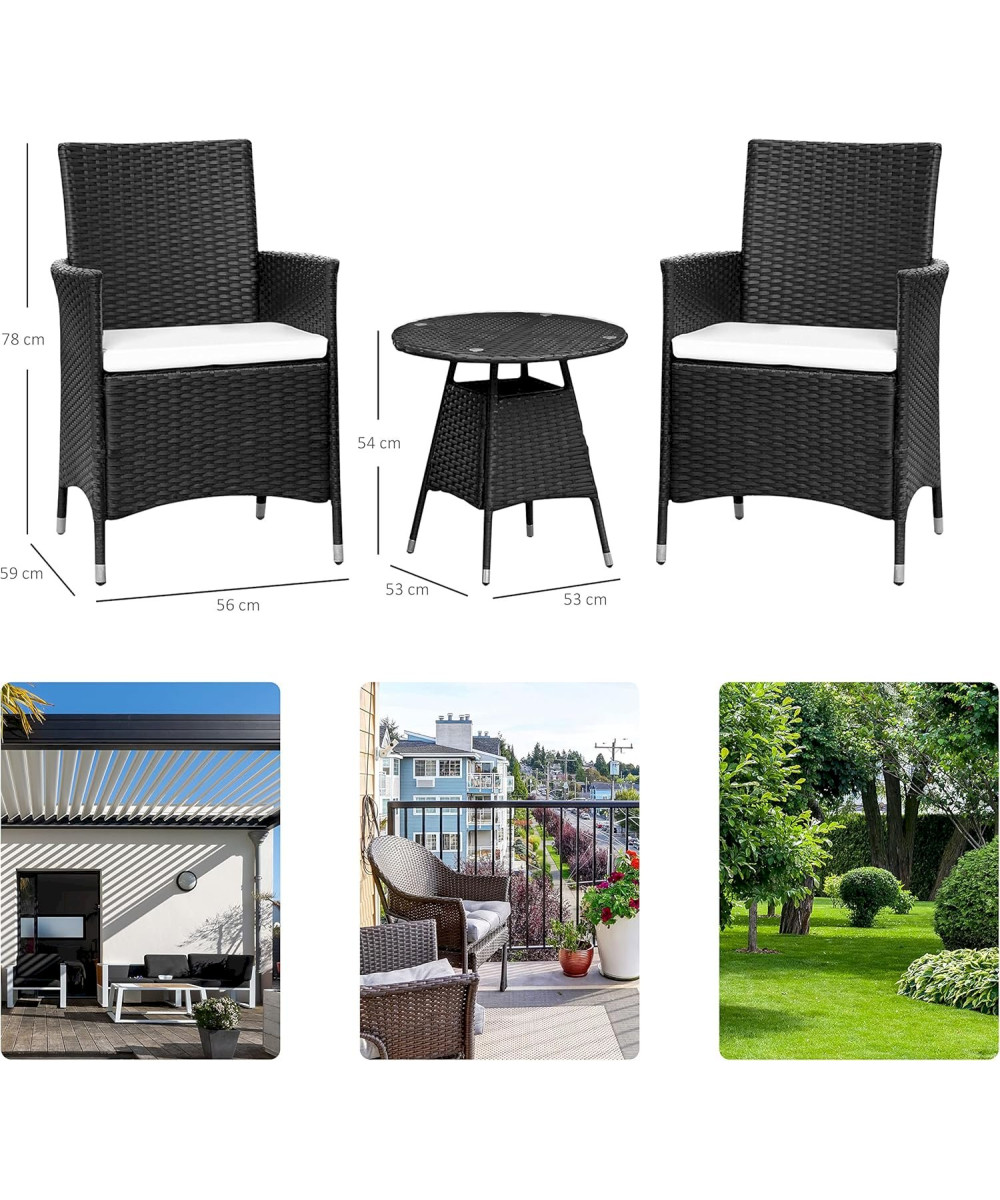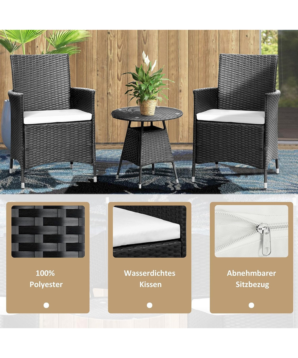 Ribelli 3-teilige Gartenmöbel Sitzgruppe Gartenset Lounge Polyrattan Rattan Essgruppe Schwarz/Cream