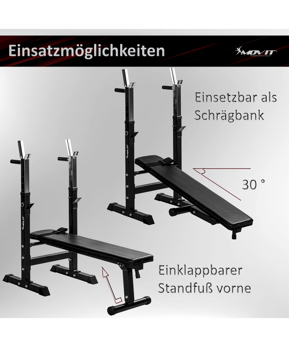 MOVIT Hantelbank mit Ablage Klappbar schwarz ohne hanteln Homegym