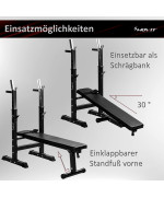 - Max. Belastbarkeit Hantelablage & Bank: 200 kg (inkl. Körpergewicht)