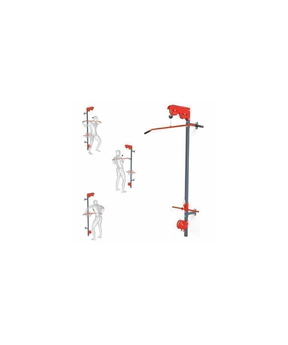 Trainieren Sie Ihre Arm-, Schulter-, Rücken- und Bauchmuskulatur mit Hilfe des an der Wand montierten Kabelzugs. Das Trainingsgerät kann auf viele Arten verwendet werden.
