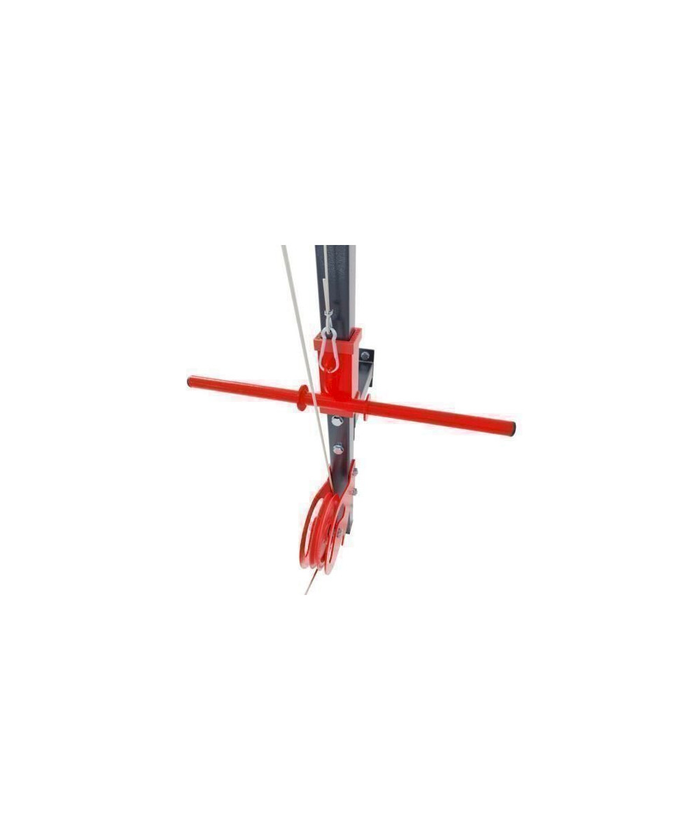 Wird ein zusätzliches Seil (im Set enthalten) durch die untere Rolle gezogen, können viele neue Übungen in unterschiedlichen Positionen ausgeführt werden. Sie können die Unterarme im Stehen beugen (Bizeps-Training), die Stange mit beiden Armen bis zur Kinnhöhe hochziehen (Schultertraining) oder sitzend auf dem Boden mit einer Hand oder zwei Händen rudern (Rückenmuskulatur). Dies sind natürlich nur wenige von vielen Möglichkeiten. Ihr Training kann sehr abwechslungsreich gestaltet werden.