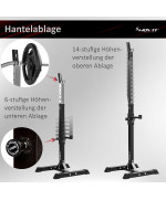 - Frei verstellbare Breite / Abmessungen je Langhantelständer: L 52 x B 53 x H 105-172 cm