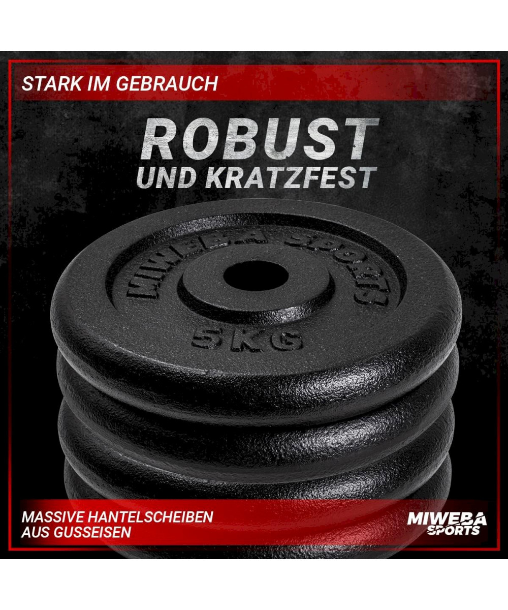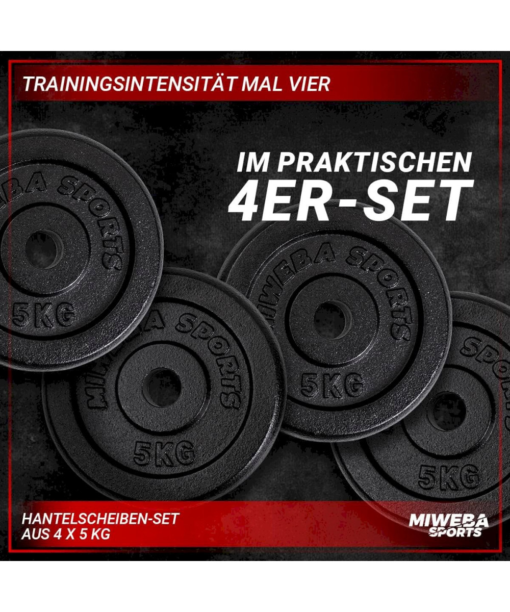Miweba Sports Hantelscheiben 4 x 5 kg Gewichtsscheiben Gusseisen 30mm