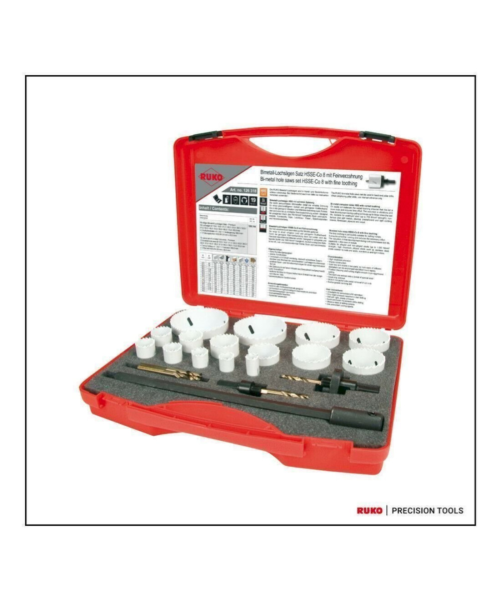 RUKO Bimetall-Lochsägen-Satz HSSE-Co 8 mit Feinverzahnung 16-83mm 19-tlg. ( 126318 )