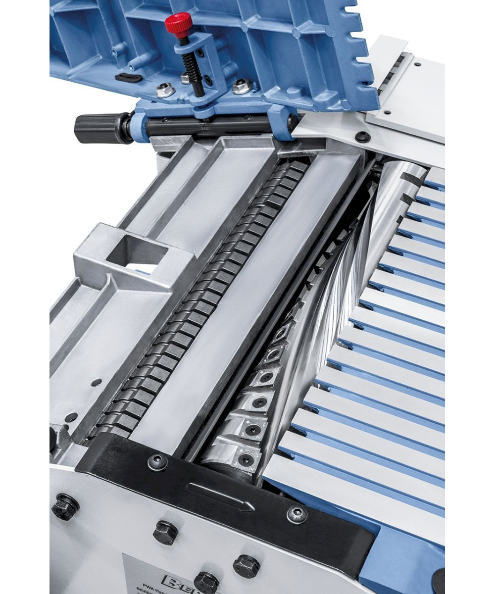 - Verminderung der Lärmbelastung (ca. 50%) durch serienmäßige Spiralmesser-Hobelwelle und