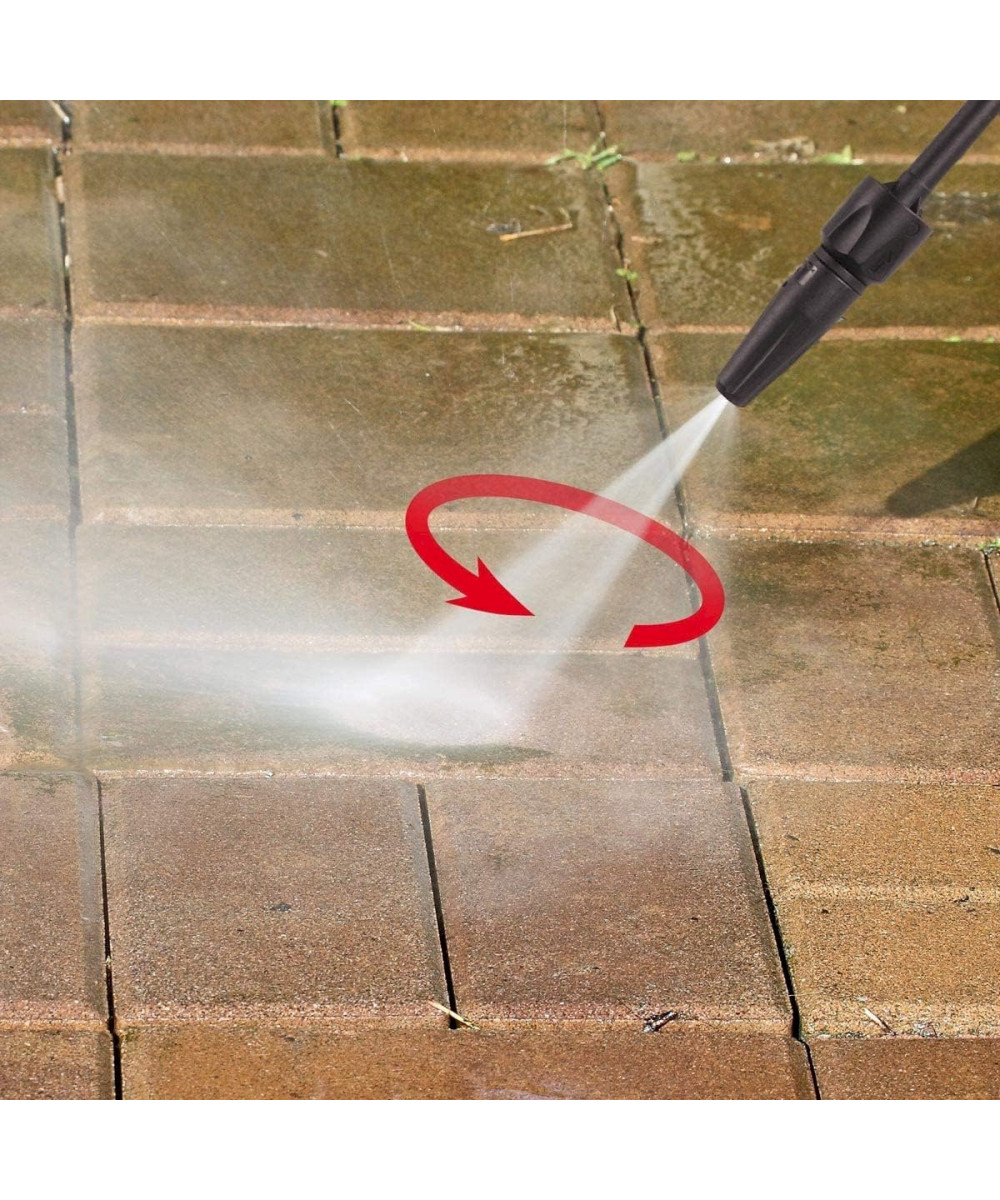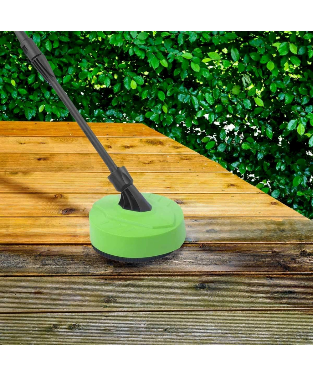 - Der Flächenreiniger mit Verlängerung ermöglicht Ihnen eine schnellere und zudem spritzfreie Reinigung von horizontalen als auch vertikalen großen Böden/Flächen als wenn Sie eine Düse verwenden. Dank der Bürsten als auch der innenliegenden rotierenden Düsen können Sie so Schmutz, Algen, Moos etc. flächendeckend entfernen