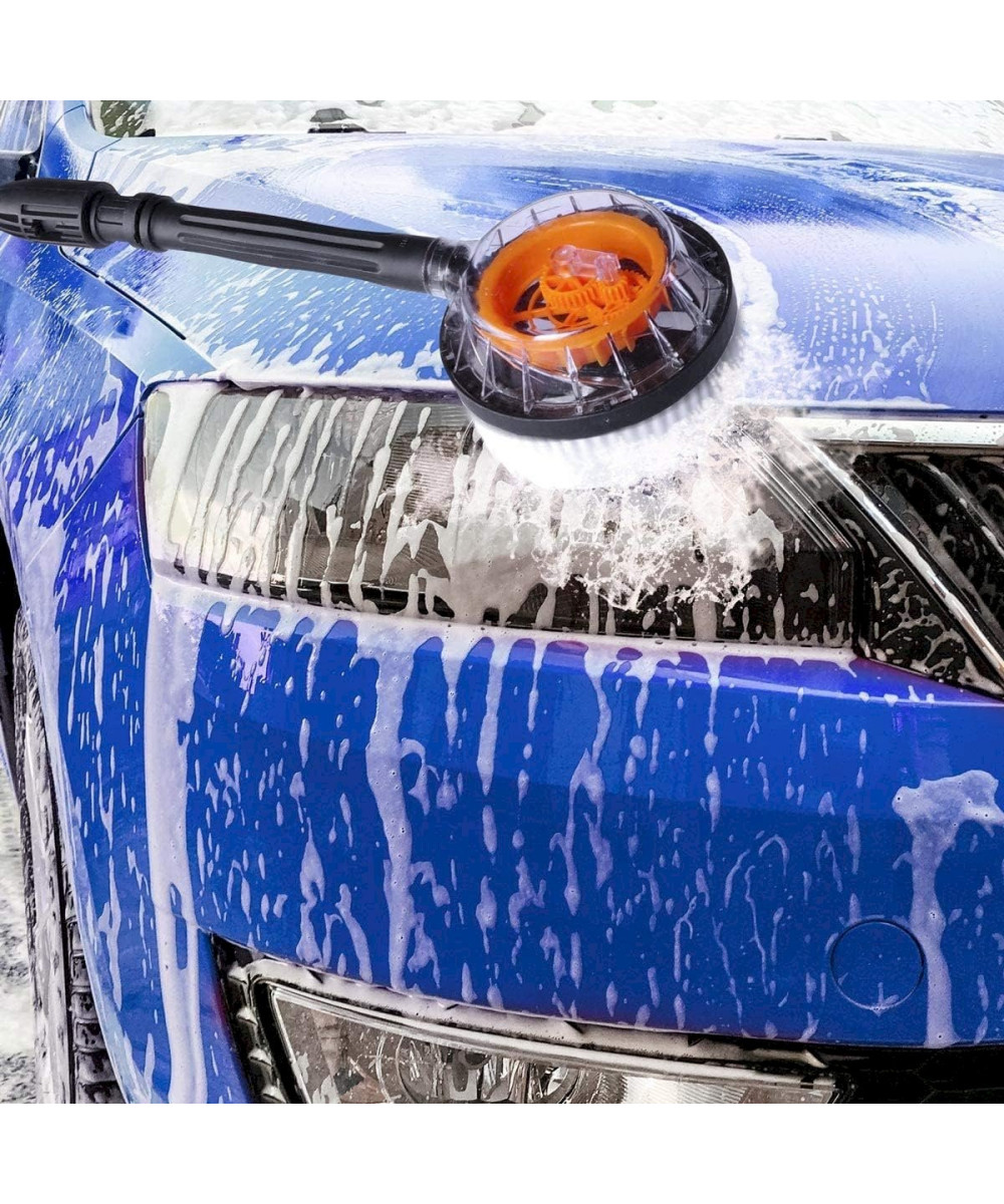 - Die Rotationsbürste dreht sich durch die Kraft des Wassers und hat so über deren Borsten eine erhöhte Reinigungswirkung. Das Wasser wird zudem auf die zu reinigende Fläche gesprüht und spült so den angelösten Dreck weg, ideal z.B. auch für die Autowäsche