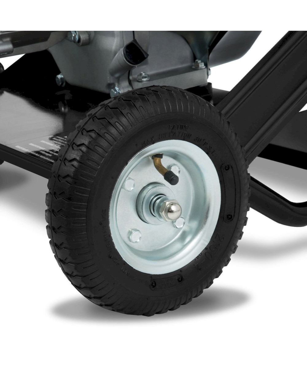 Durch den robusten Benzin betriebenen 4-Takt Motor mit 6,5 PS Leistung sind Sie unabhängig von Ihrer Stromversorgung . Der Benzinmotor wird per Seilzug gestartet und verfügt über eine Ölmangelsicherung zum Schutz des Motors .