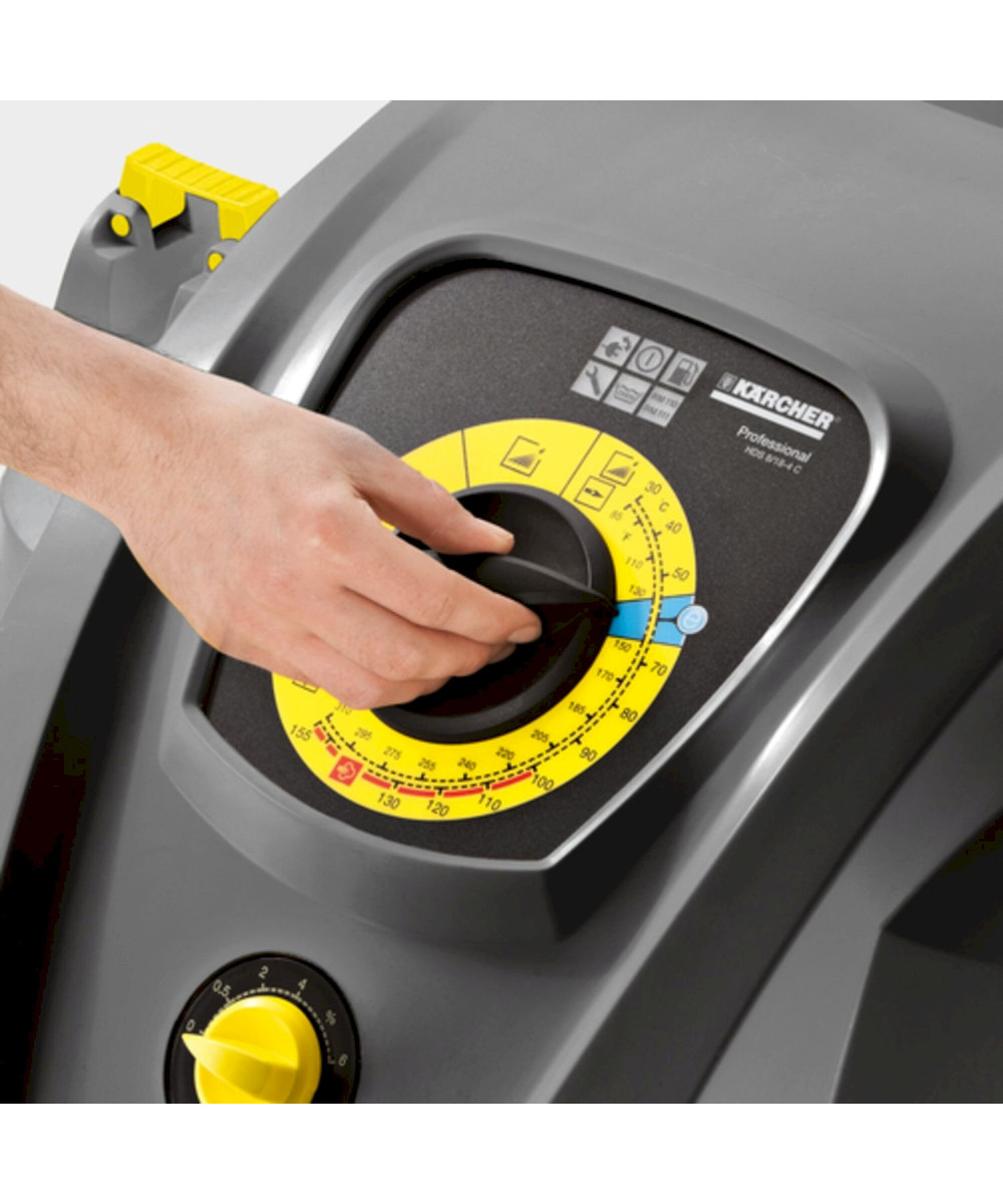 Der HDS 8/18-4 C ist der leistungsstärkste Heißwasser-Hochdruckreiniger aus unserer HDS-Kompaktklasse. Das 3-phasige Gerät mit 4-poligem, wassergekühltem Elektromotor bietet alles, was heute in Sachen Bedienkomfort, Ergonomie und effizienter Ressourcennutzung erwartet werden darf. Die einfache Ein-Knopf-Bedienung überzeugt Nutzer genauso wie die überraschend hohe Mobilität, die durch große Räder und eine Lenkrolle gewährleistet wird. Während die EASY!Force-Hochdruckpistole die Rückstoßkraft des Hochdruckstrahls ausnutzt, um die Haltekraft auf null zu reduzieren, ermöglichen die EASY!Lock-Schnellverschlüsse ein im Vergleich zu herkömmlichen Schraubverbindungen 5-mal schnelleres Handling ohne Einbußen bei Robustheit und Langlebigkeit. Sicherheit bietet das widerstandsfähige Chassis, in dem die Tanks für Reinigungsmittel und Brennstoff geschützt integriert sind. Nützliche Ablagen für Zubehöre und Werkzeuge ergänzen die breite Ausstattungspalette des HDS 8/18-4 C.