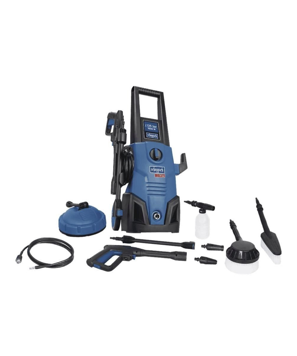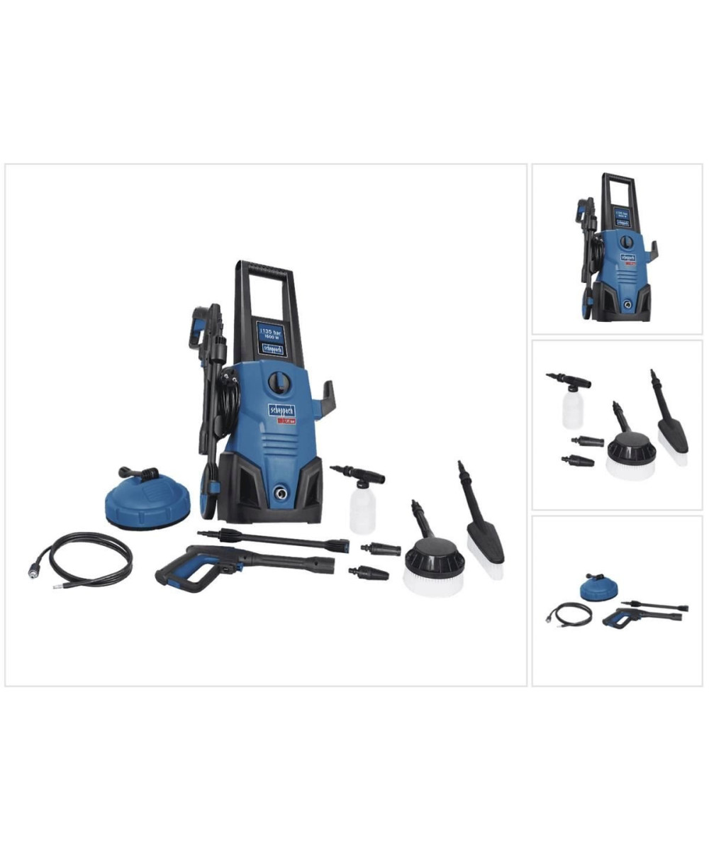 Ob Auto waschen, Beläge von Steinplatten abtragen, Klimaanlagen säubern und vieles mehr, der Scheppach HCE1600 Elektro Hochdruckreiniger ist mit seinen kraftvollen 135 bar immer eine gute Wahl. Das Quick Connect System gewährleistet einen schnellen Wechsel verschiedener Aufsätze. Das Gewicht von 7,34 Kg sorgt für einen sicheren Stand und in kombination mit den großen Laufrollen dennoch für einen einfachen Transport des Geräts. Der 5 m Lange Hochdruckschlauch garantiert einen großen Arbeitsradius. Die integrierte Halterung am HCE1600 kann verschiedene Düsenaufsätze und den Hochdruckschlauch aufnehmen. Dank der unterschiedlichen Aufsätze des Gerätes sind die meisten Anwendungen abgedeckt. Die verbaute, hochwertige Aluminiumpumpe verspricht eine lange Lebensdauer und einen zuverlässigen Einsatz.