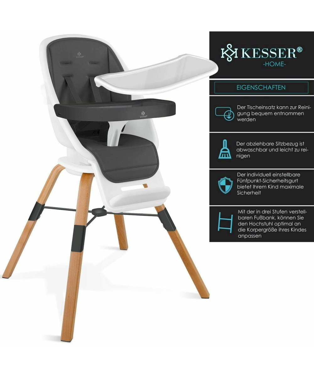 KESSER® 3in1 Hochstuhl Kinderhochstuhl Babystuhl Kinderstuhl Hocker Essstuhl anthrazit