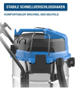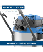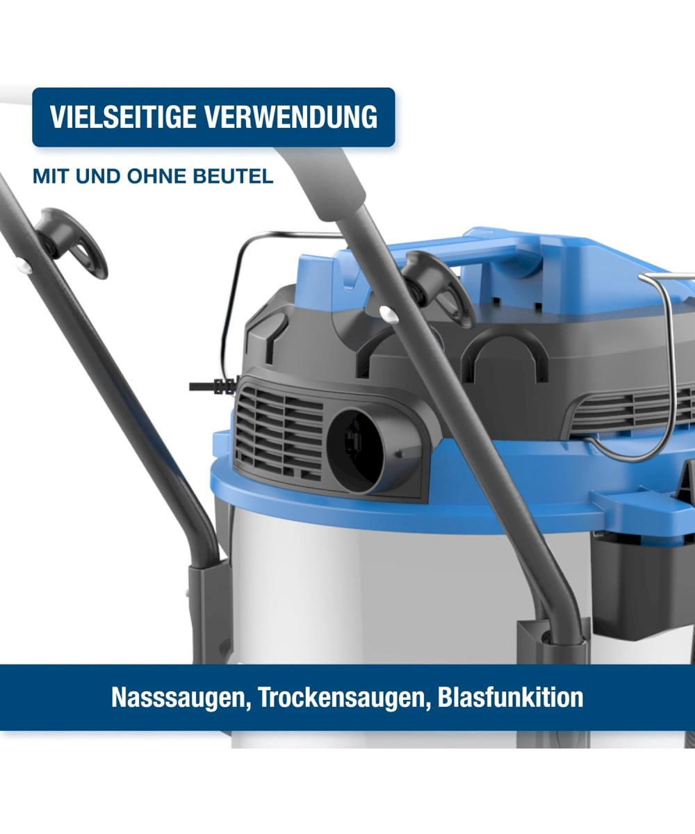 Der Mehrzwecksauger ist mit einer Blasfunktion ausgestattet. Stecken Sie den mitgelieferten Saugschlauch in den Abluftanschluss und verwandeln Sie den Industriestaubsauger in einen leistungsstarken Blassauger. Damit lassen sich Teppiche und Polstermöbel entstauben oder schwer zugängliche Stellen von Schmutz befreien.