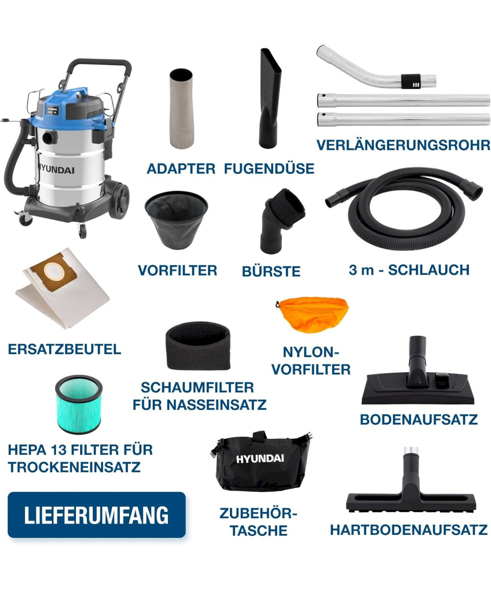 HYUNDAI VCWD1650E Nass Trockensauger 1600W 50L Staubsauger Industriesauger