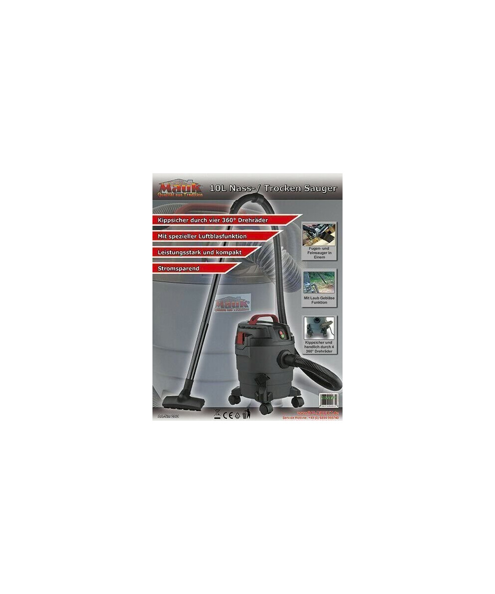 Dieser 10-Liter Nass- und Trockensauger von Mauk ist sehr leistungsstark und zusätzlich sehr energiesparend und ist für alle Anwendungsbereiche geeignet. Eine hygienische Reinigung ist aufgrund des Mehrfachluftfiltersystems garantiert. Besonders die Laub-Gebläse-Funktion sowie die beiliegenden Aufsätze machen diesen Sauger sehr besonders. In diesem Gerät erhalten Sie einen Fugen- und Feinsauger in Einem. Die weitere Besonderheit des waschbaren und wiederverwendbaren Filters ist sehr schonend für Ihren Geldbeutel, da keine weiteren Kosten für Sie anfallen. Aufgrund der angebrachten 360° Drehräder (4 Stück), kann der Sauger beliebig, raumsparend und schnell verschoben werden. Die Drehräder dienen auch zur Halterung für die beiliegenden Aufsätze. Der zusätzlich montierte Griff macht auch das Transportieren sehr einfach.
