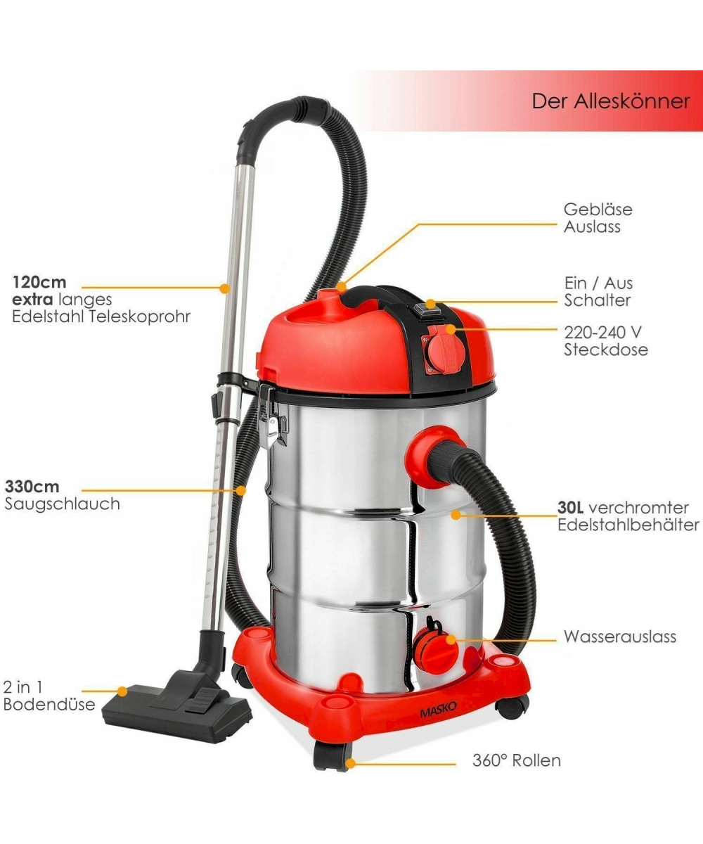 Aus dem Hause MASKO ® bieten wir Ihnen heute ein neues und vor allem praktisches Highlight an – einen leistungsstarken Nass- und Trockensauger.