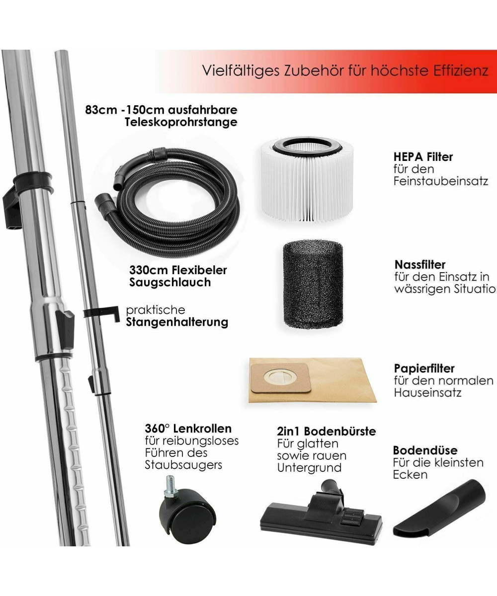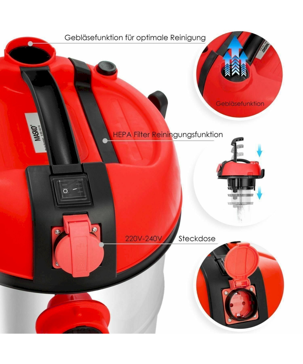 MASKO Staubsauger 2300W Rot Nass Trocken Industriestaubsauger 30L industriesauger