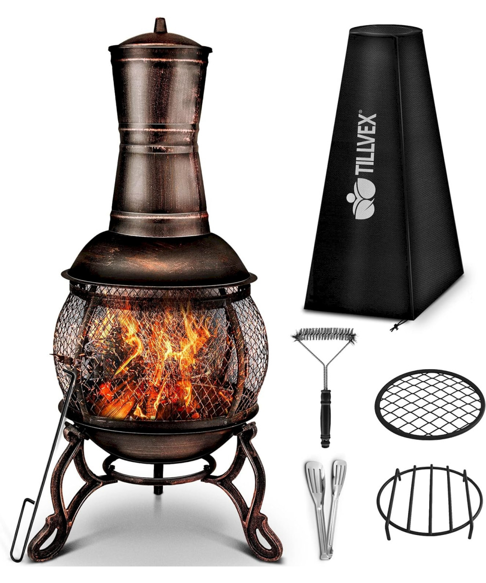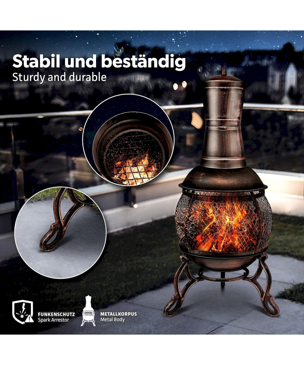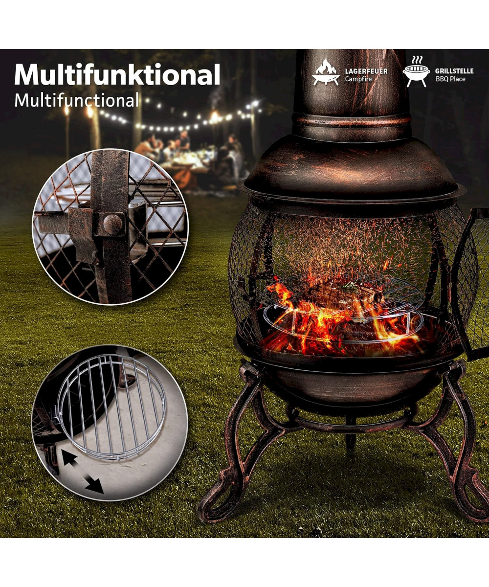 Terrassenofen mit Funkenschutz, Grillfunktion und Zubehör 90cm bronze