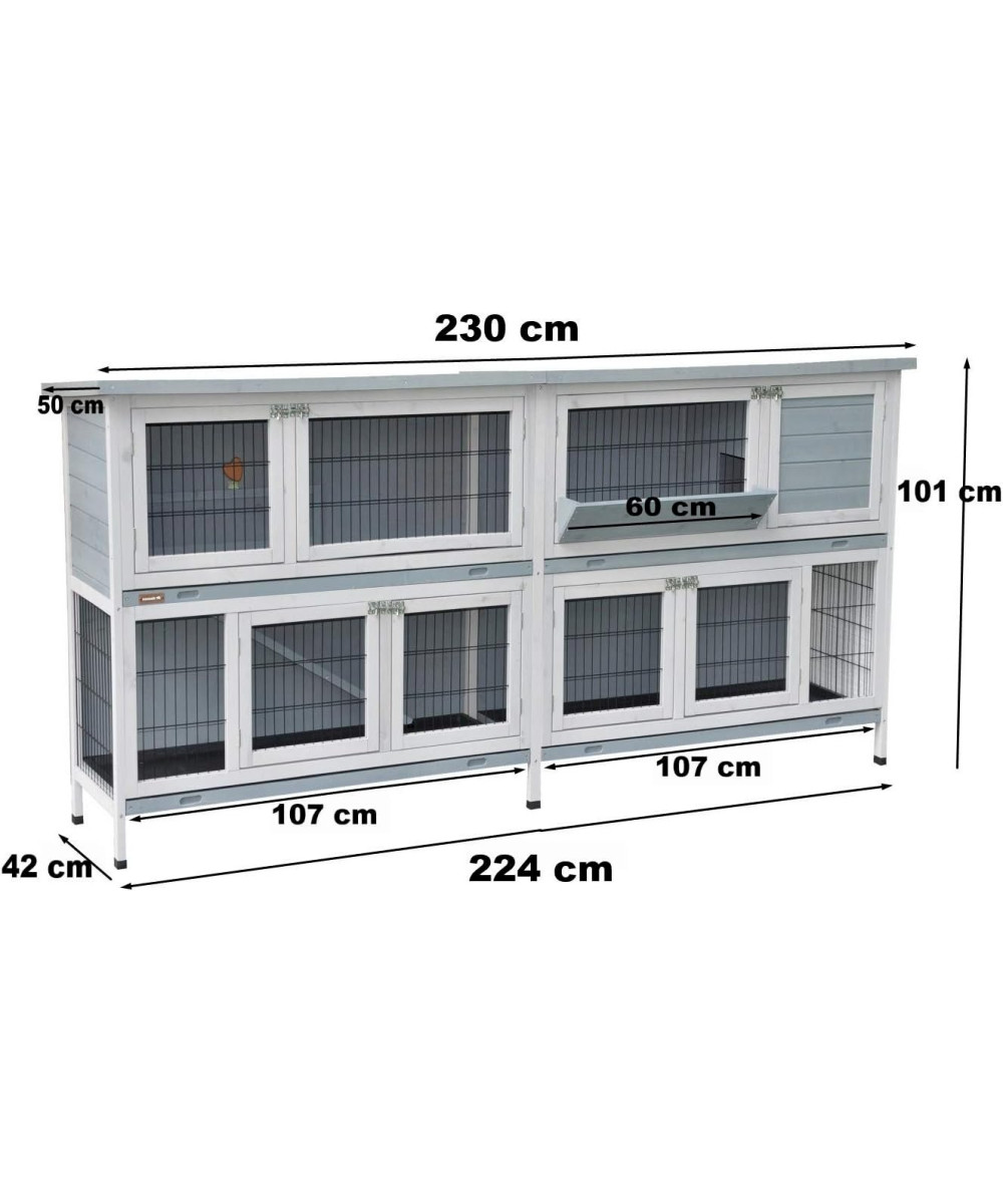 nanook Doppel Hasenstall Kaninchenstall Kleintierstall grau 230x50x101cm
