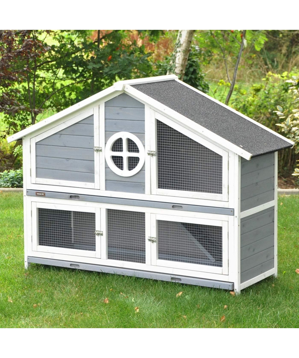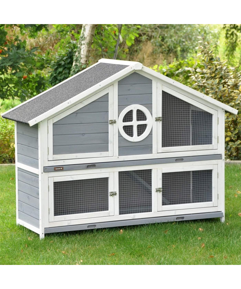 nanook Momo Kaninchenstall Hasenstall wetterfest 128x46x110cm grau/weiß