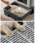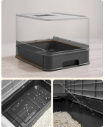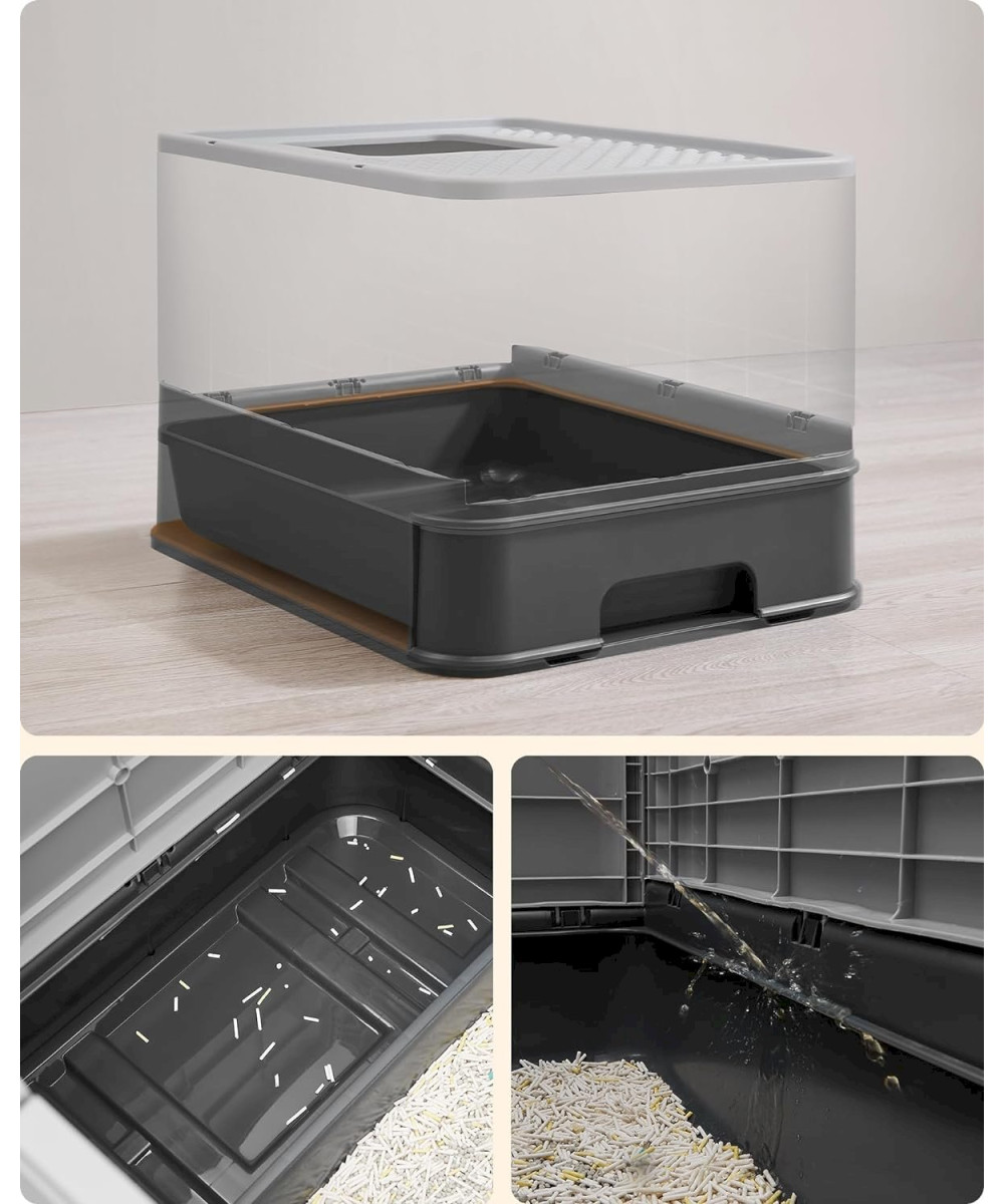 - Kein Auslaufen: Ein verlängerter Rand oberhalb der Box und ein geschlossener Boden darunter verhindern, dass Streu oder Urin auf den Boden gelangen.