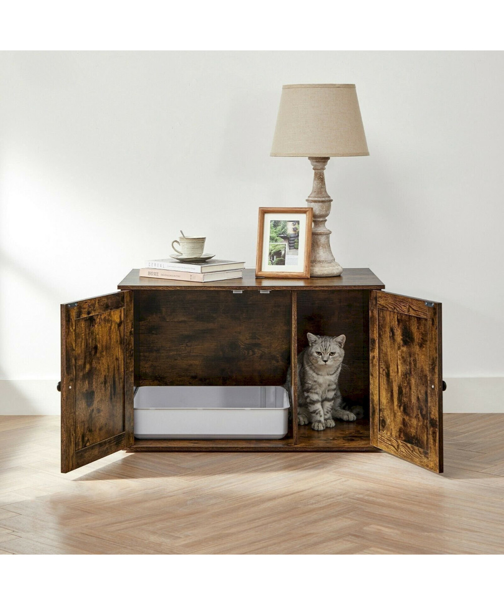 - Zwei Türen mit Griffen ermöglichen einen einfachen Zugang zum Katzenschrank, um die Streu zu entsorgen