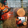 Das geringe Gewicht von nur 3,5 kg und die rutschfesten Griffe machen das Arbeiten über einen längeren Zeitraum problemlos möglich. Die Motorsäge lässt sich schnell und problemlos starten und begeistert mit einer hervorragenden Benutzerfreundlichkeit . Der Handschutz, der im Notfall auch die Kettenbremse auslöst, sorgt für maximale Sicherheit.