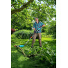 Der schmale Schneidkopf ist doppelt praktisch: Wenn Du ihn abwinkelst, erreichst Du in Baumwipfeln enge Stellen. Und Du kannst am Boden liegende Äste zerkleinern, ohne Dich hinknien oder bücken zu müssen. So bringst Du den Baumschnitt in eine handliche Größe und kannst ihn einfach entsorgen.