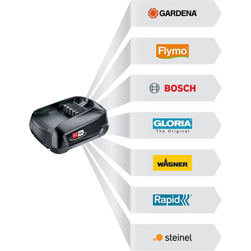 Der Akku-Teleskop-Hochentaster TCS 20/18V P4A wird als Ready-To-Use Set mit Ladegerät und einem 2,5-Ah-18V-POWER FOR ALL-Akku geliefert. Die POWER FOR ALL ALLIANCE ist eine der größten markenübergreifenden Akku-Allianzen führender Hersteller. Deren Akkus sind mit zahlreichen weiteren Geräten rund ums Haus und den Garten kompatibel – was bedeutet, dass Du nicht mehr für jedes Produkt einen kaufen musst. So sparst Du Geld und bist flexibel! Power für Deine Ideen!