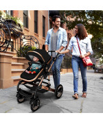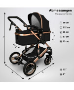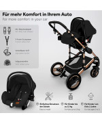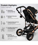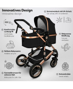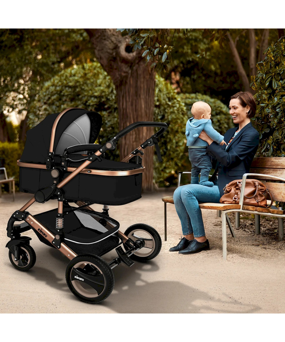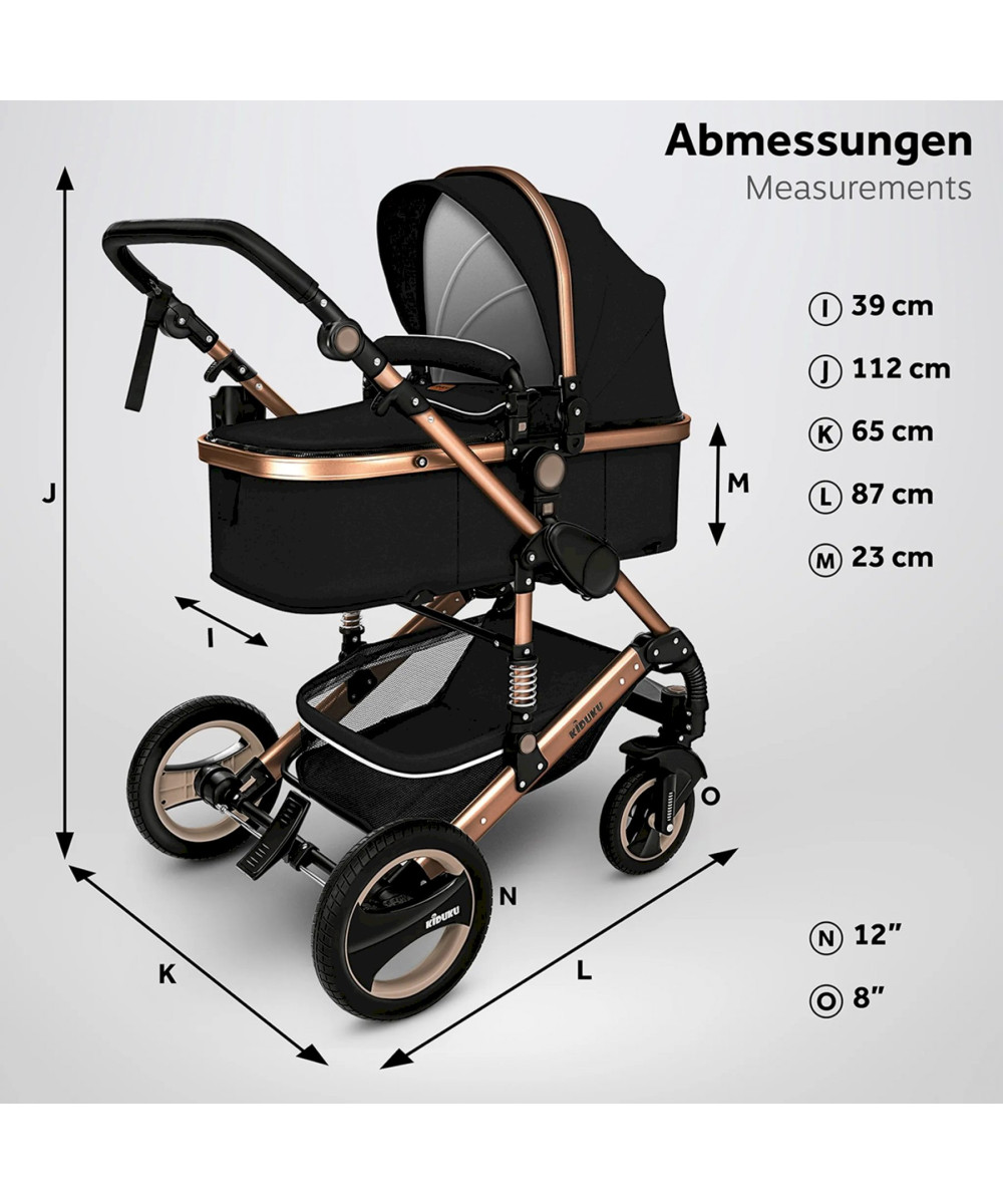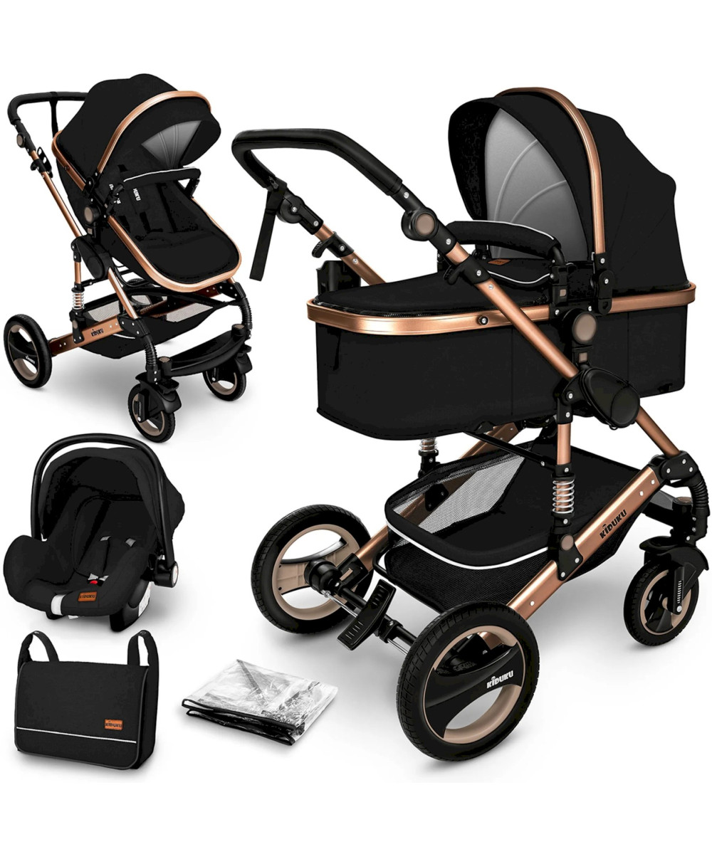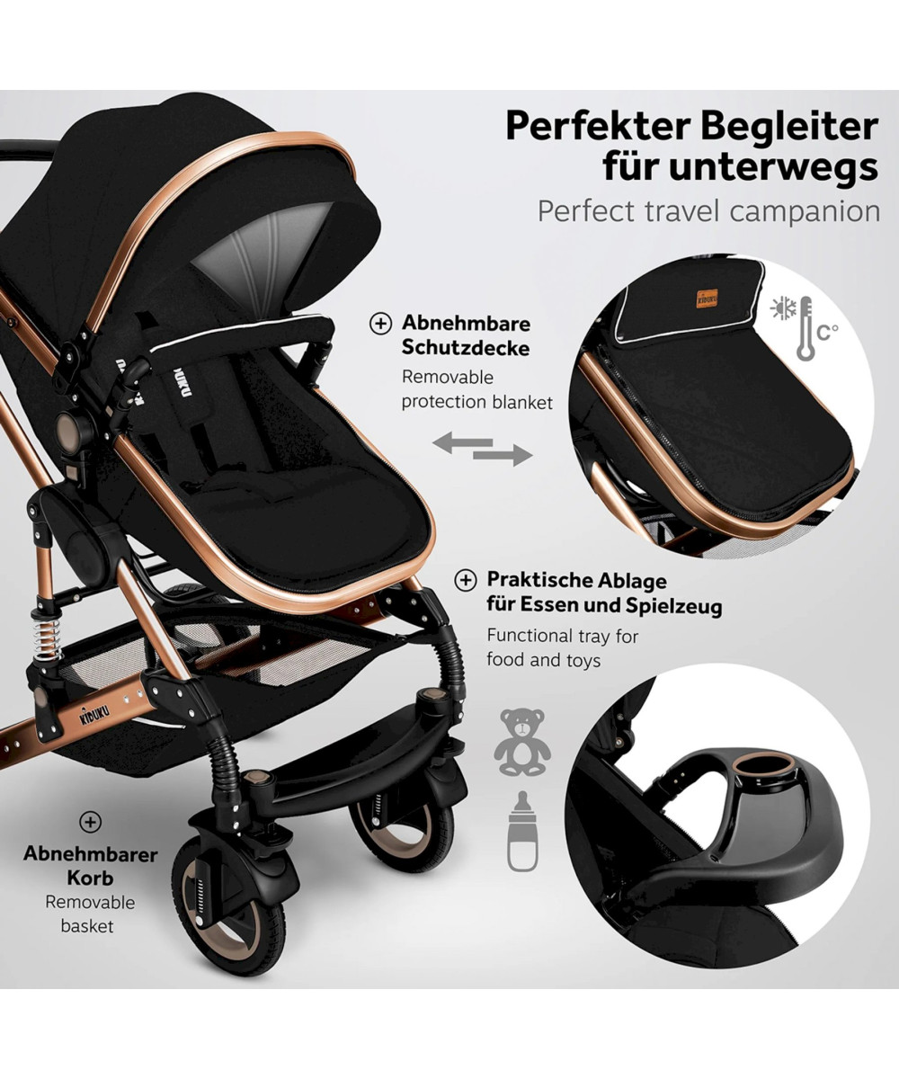KIDUKU® 3 in 1 Kombi-Kinderwagen Buggy Reisebuggy inkl. Auto- Babyschale Faltbar SCHWARZ/GOLD