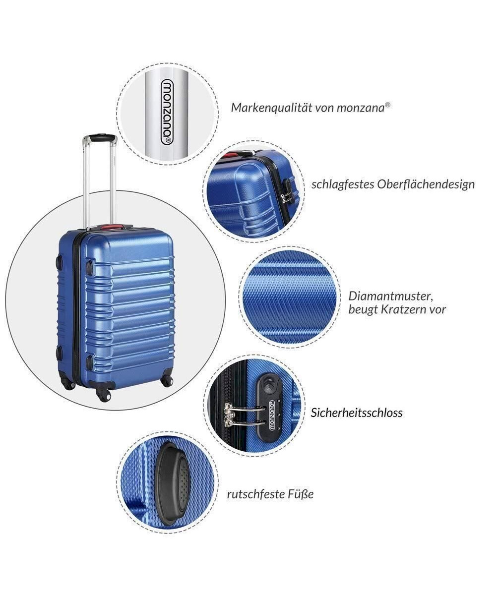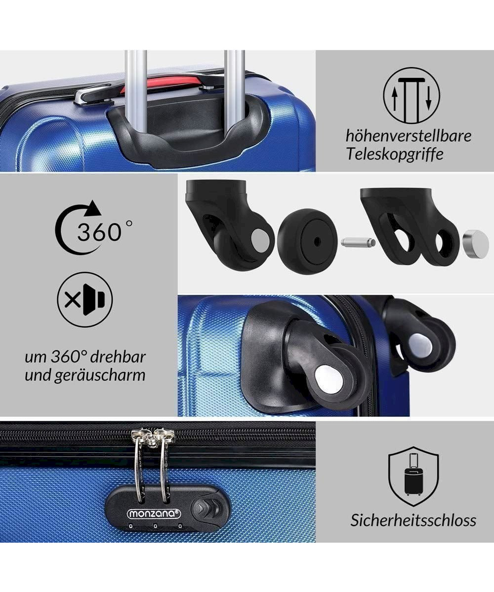 Monzana 4er Koffer Set Baseline blau S, M, L, XL Gelgriffe Zahlenschloss Reisekoffer Trolley Kofferset Rollkoffer