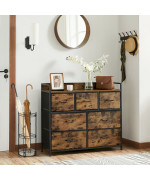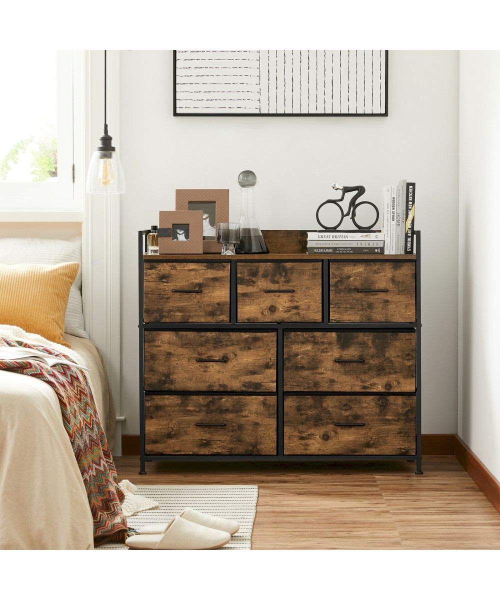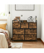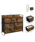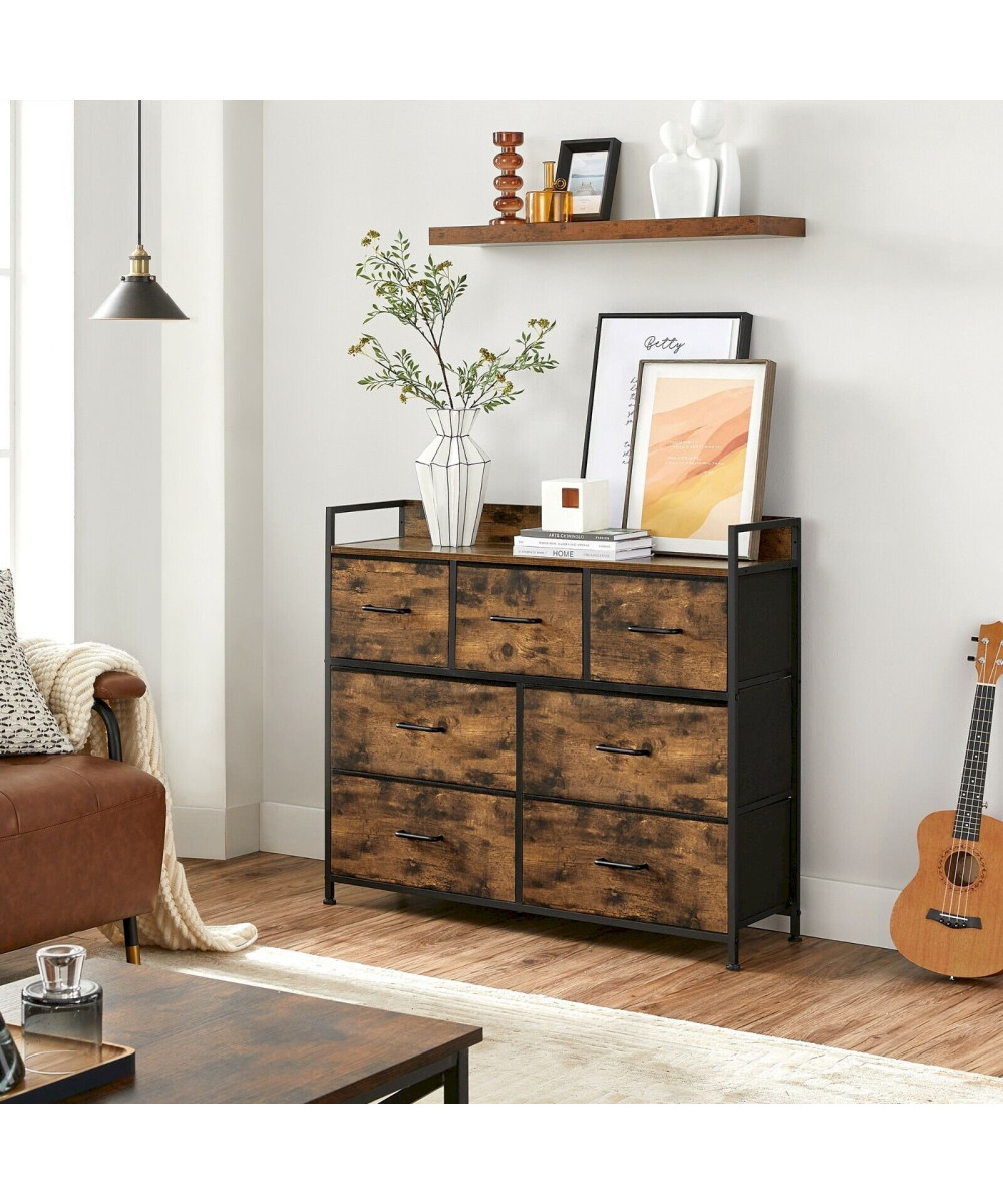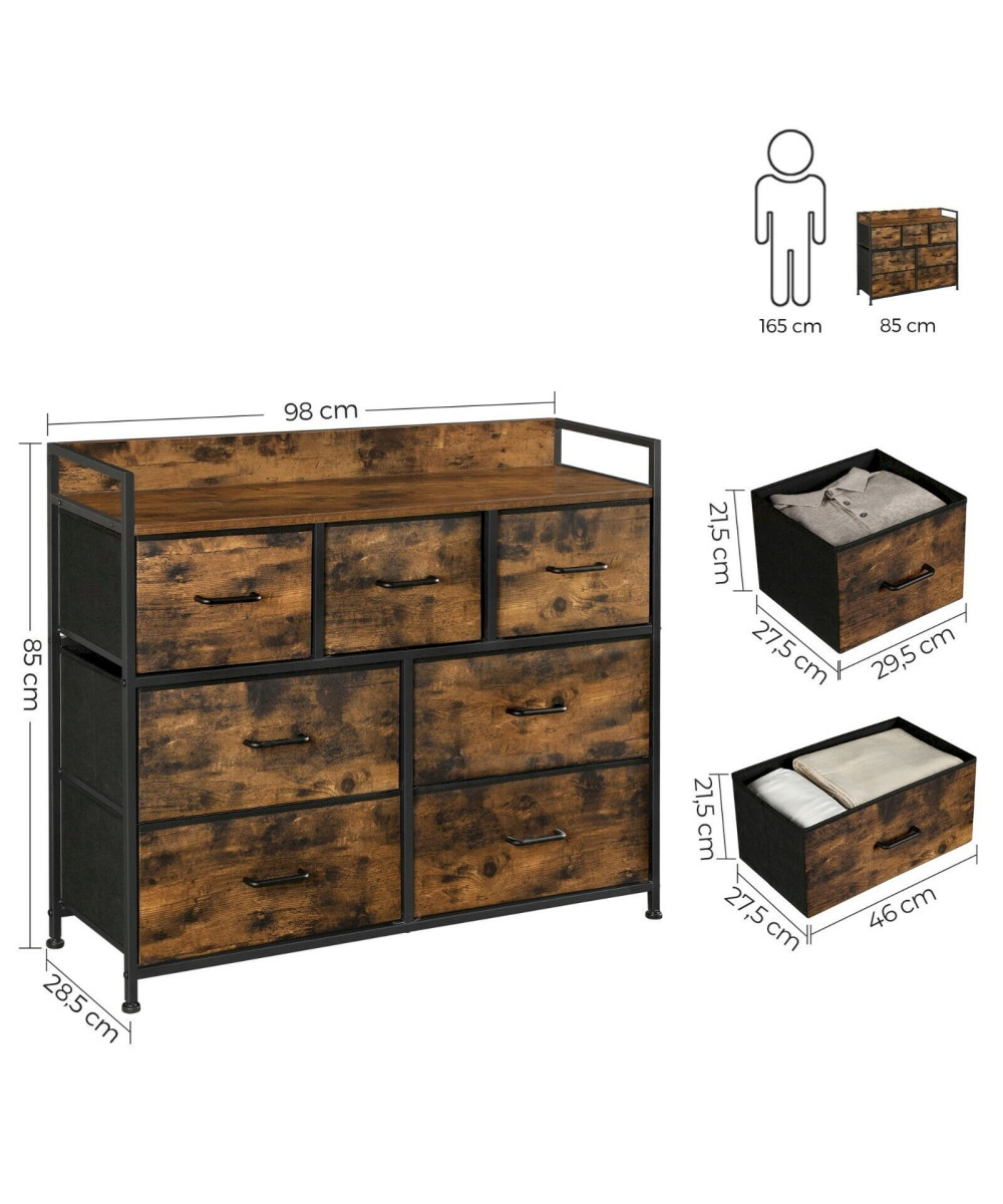 SONGMICS Industrie-Design Kommode mit 7 Stoffschubladen Vintagebraun + Schwarz Metallgestell