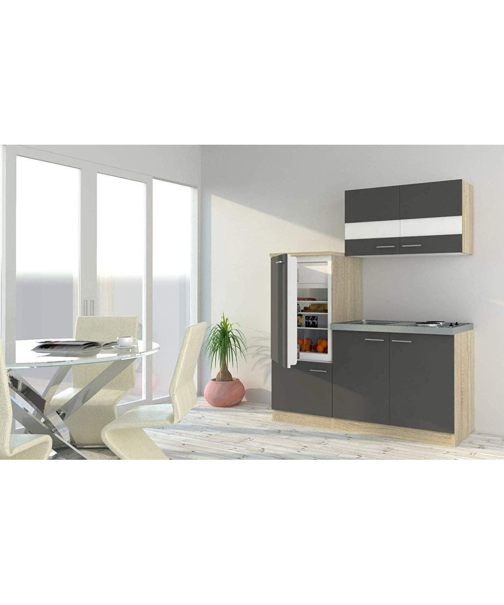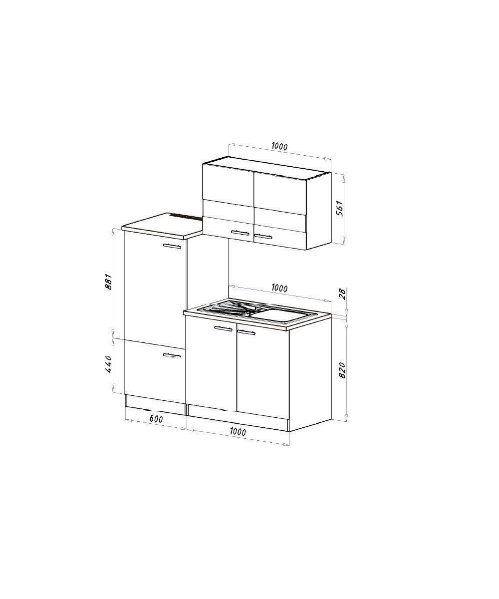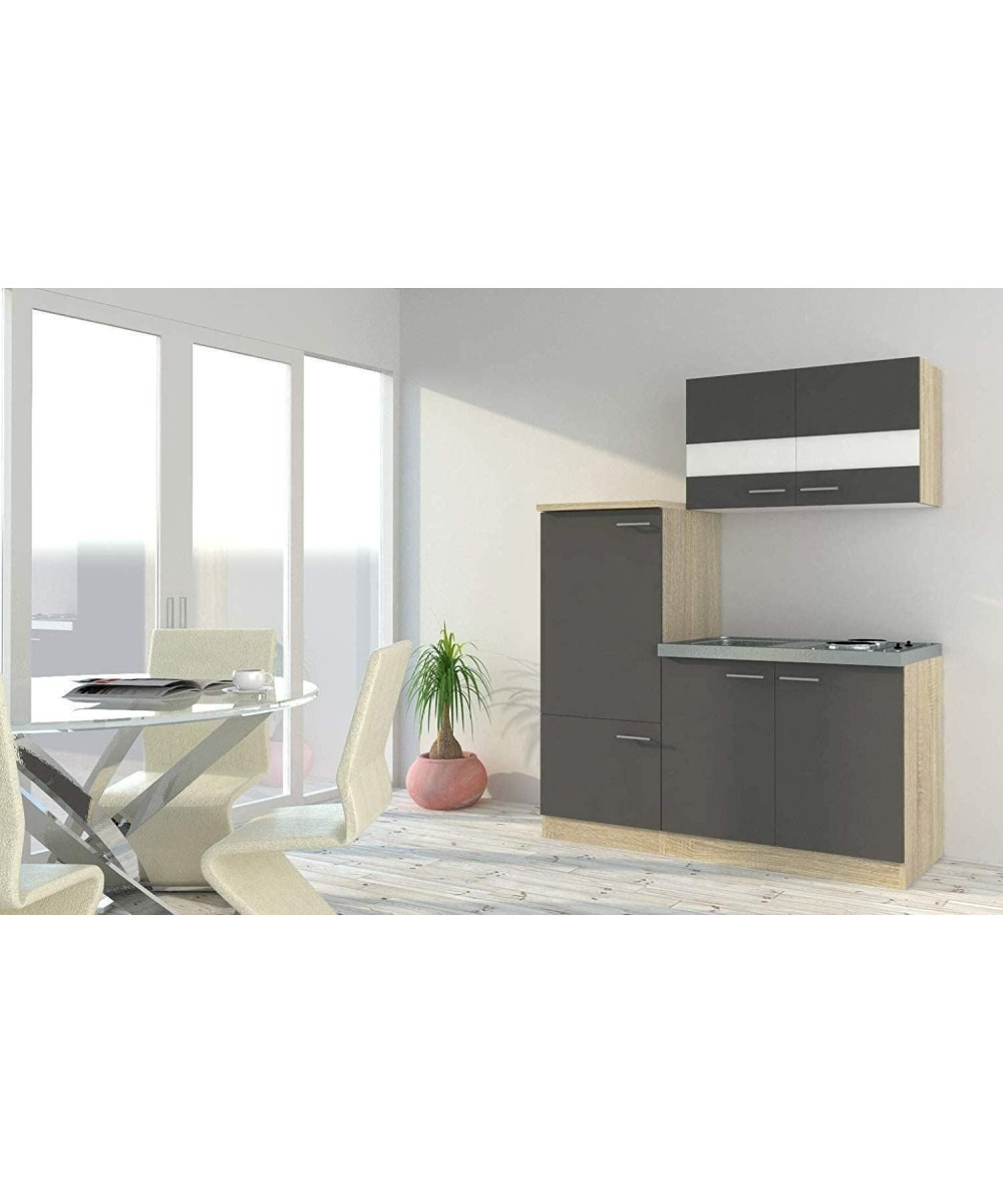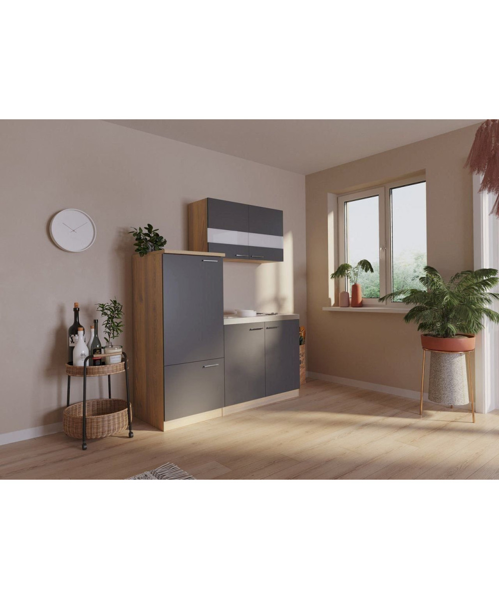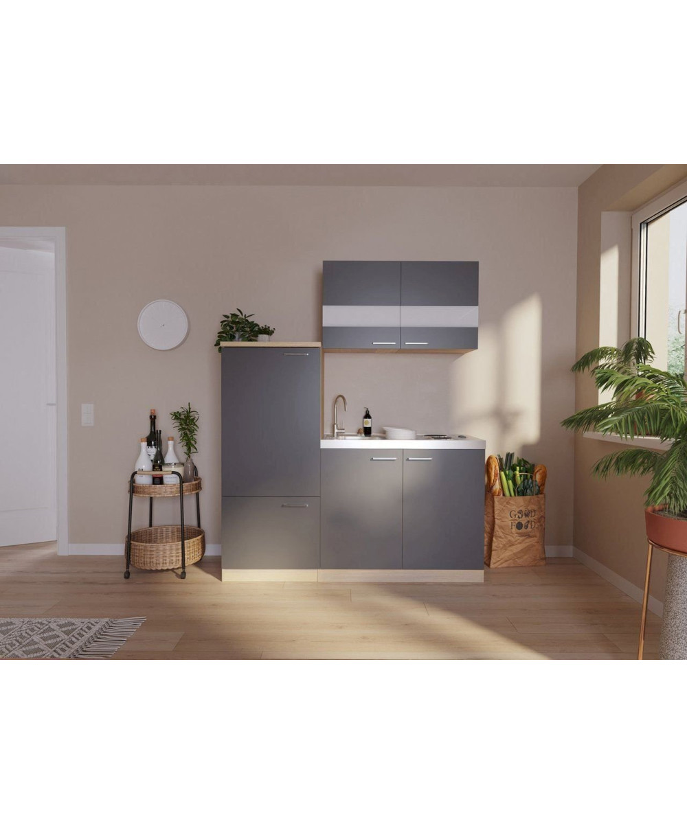 Respekta Luis KB160ESG Singleküche 160 cm mit Geräten, grau