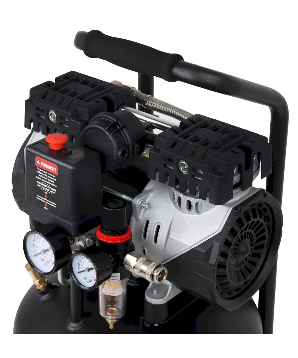 Der Flüsterkompressor benötigt kein Öl, wodurch er äußerst wartungsarm ist und die Umwelt schont. Durch den angebrachten Griff und die kompakte Bauweise erhalten Sie einen platzsparenden Kompressor, perfekt geeignet für den Einsatz im Garten, Haushalt und in der Garage.