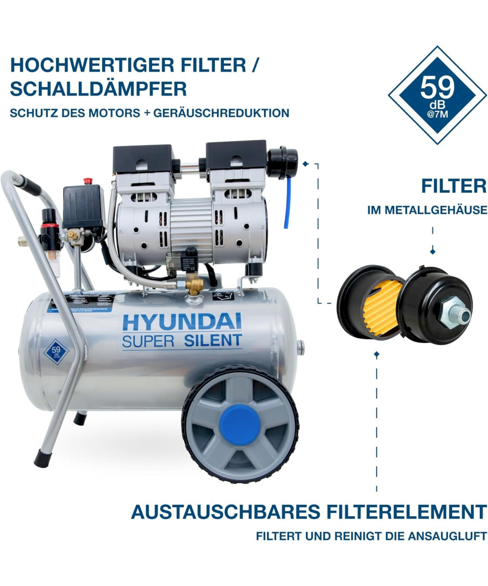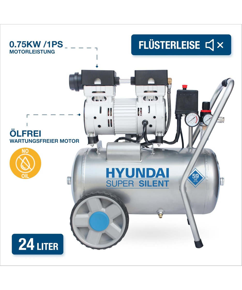 HYUNDAI Silent Kompressor SAC55752 Druckluftkompressor Flüsterkompressor 24L
