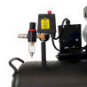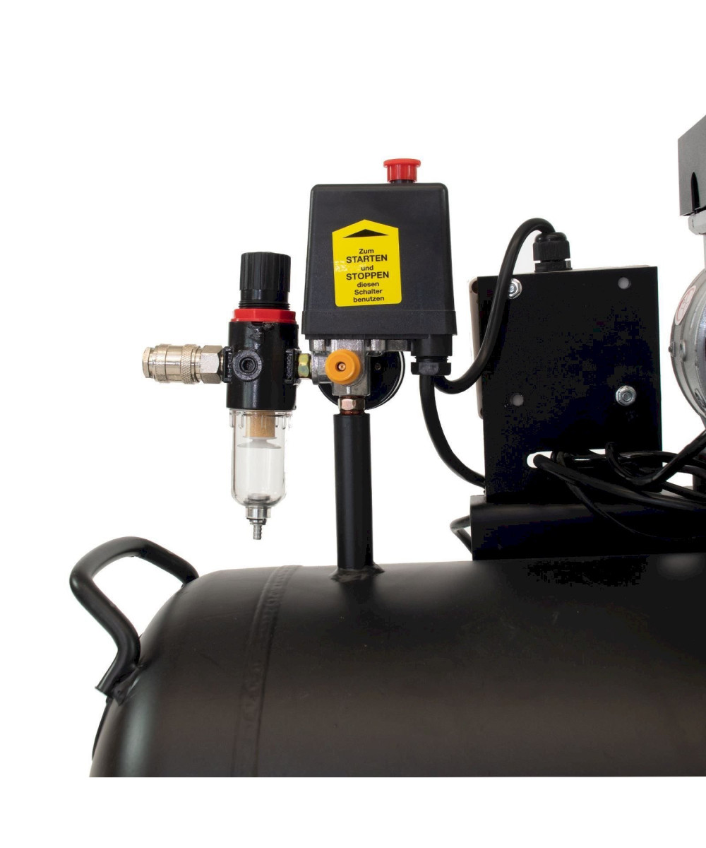 - Zwei Manometer (1x Arbeitsdruck, 1x Kesseldruck) und Schnellkupplung für geregelten Arbeitsdruck