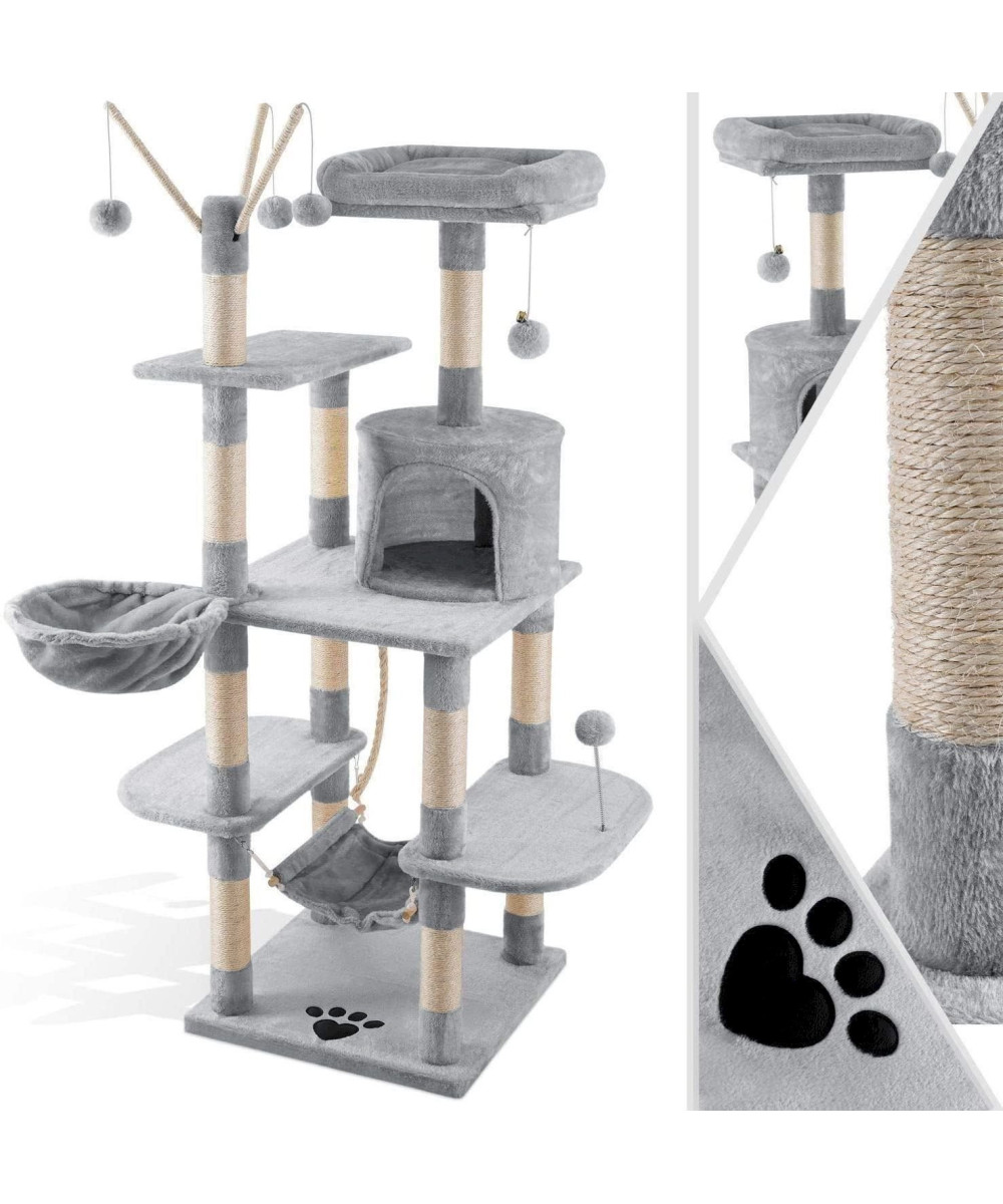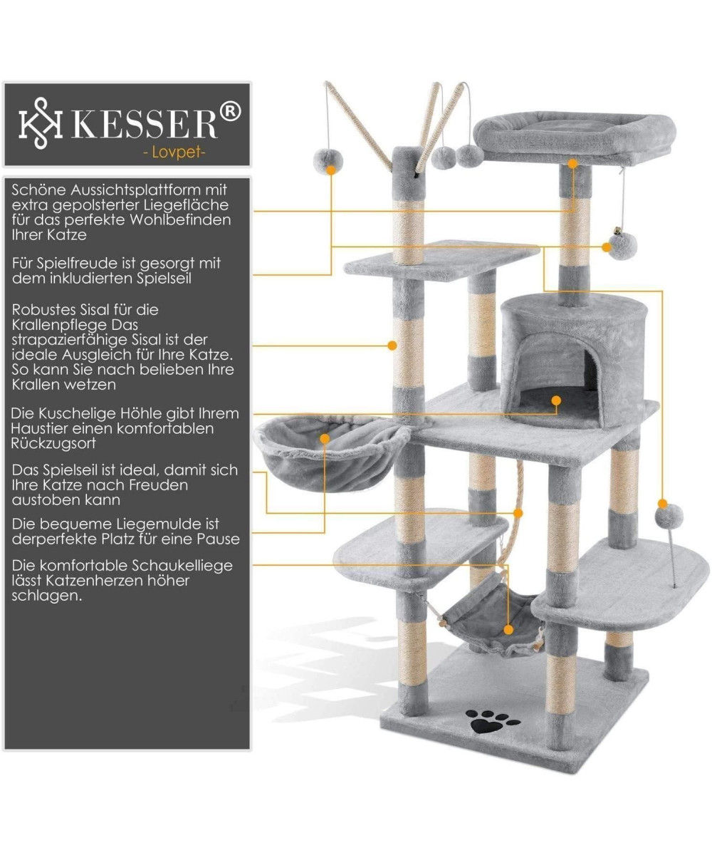 LovPet Kratzbaum Hellgrau 149cm Kletterbaum Katzen Katzenkratzbaum Stabil