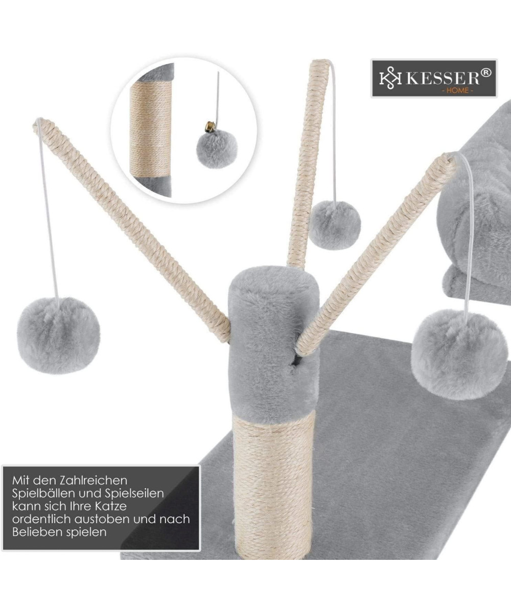 5 Spielbälle, die sich bei Berührung schnell hin und her bewegen, wecken in Ihrer Katze das Raubtier. Die Sisalbänder und das Spielseil sorgen dafür, dass jederzeit Spiel-und Kratzmöglichkeiten gegeben sind und Ihre Katze sich wohlfühlt.