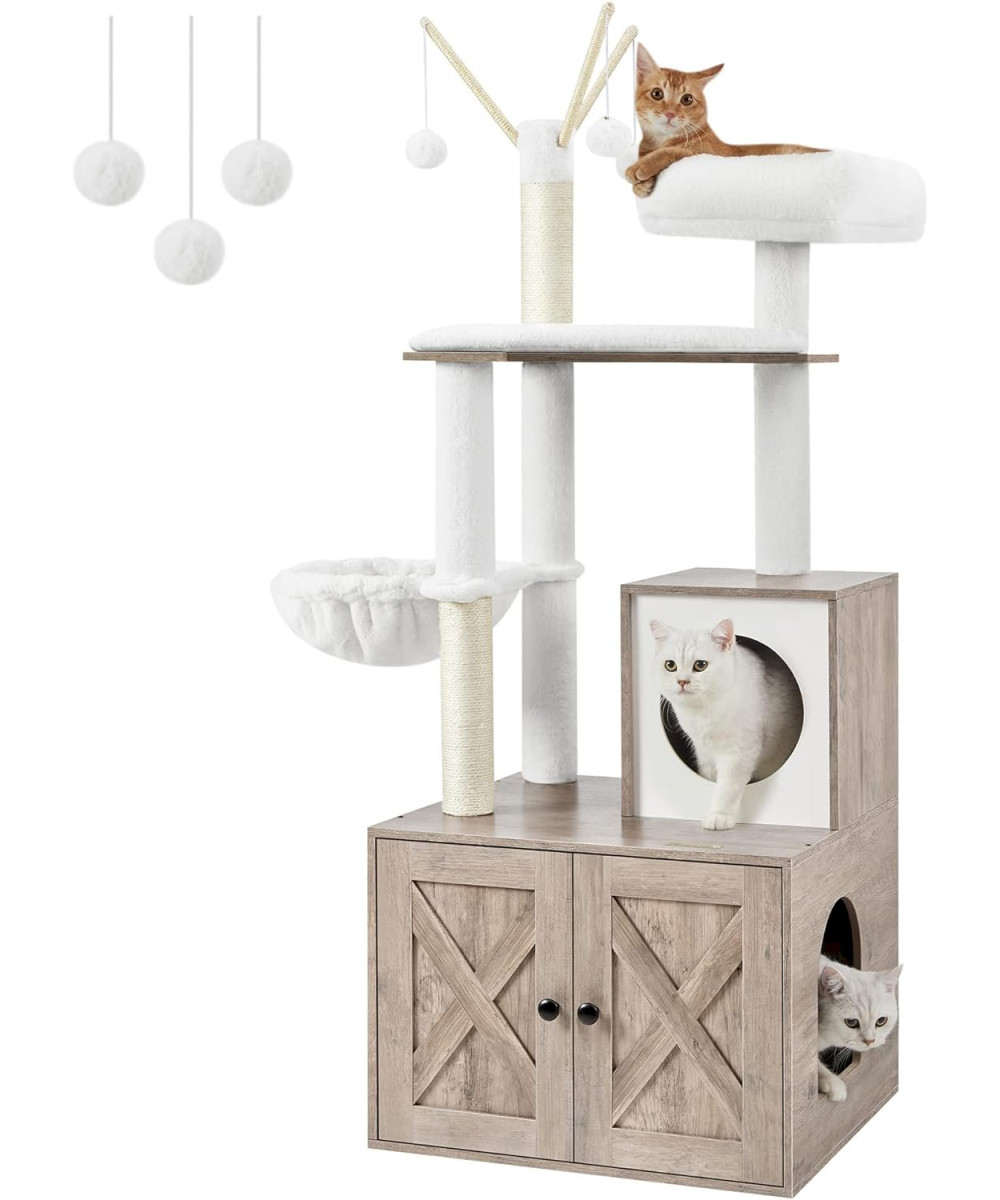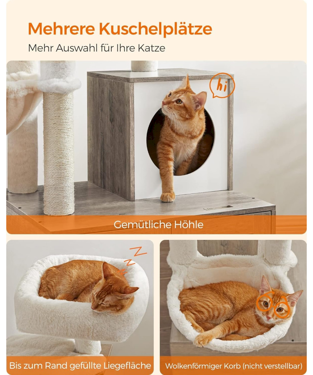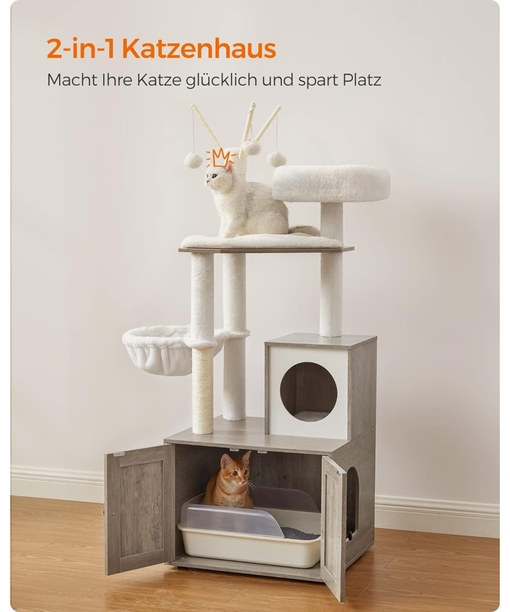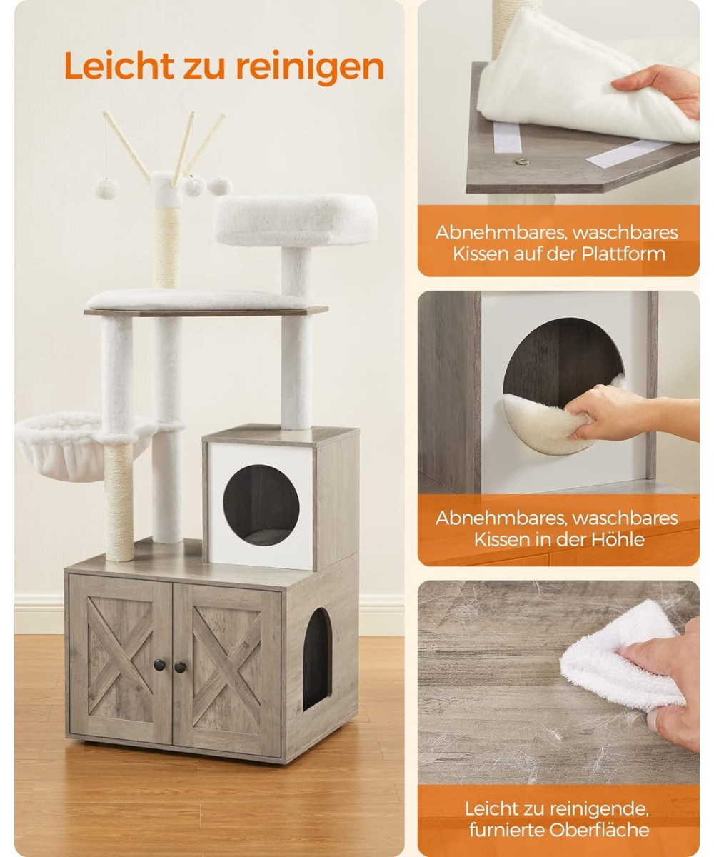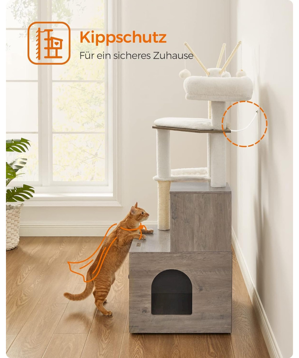 Feandrea Kratzbaum mit Katzenklo-Schrank abnehmbar greige 140 cm