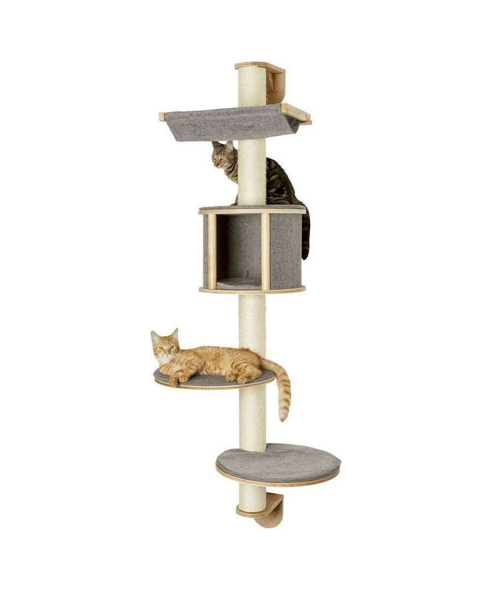 An diesem wunderschönen Wandkratzbaum Dolomit Tofana von Kerbl können Ihre Katzen kratzen, verstecken spielen, klettern und sich nach Herzenslust entspannen. Er passt zu jedem Dekor. Der Kratzbaum verfügt über eine Hängematte, eine Höhle und mehrere Säulen, die Ihrer Katze jede Menge Spiel- und Kletterspaß garantieren werden. Ihre Katzen können auf den Webstoffkissen und der Hängematte bequem entspannen und schlafen. Sisal ist an den Säulen verklebt und die Höhle dient Ihrer Katze als gemütliches Versteck. Der Katzenbaum lässt sich einfach an der Wand montieren, ist langlebig und robust.